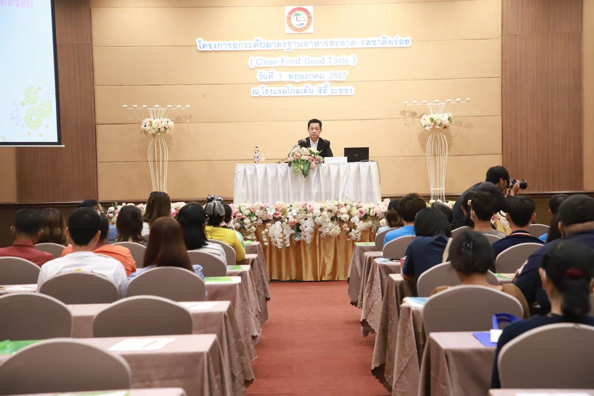 วันที่ 1 พฤษภาคม 2567 เวลา 09.00 น. ณ ห้องสร้อยเพชร 1 โรงแรมโกลเด้น ซิตี้ ระยอง นายกิตติ เกียรติ์มนตรี รองนายกองค์การบริหารส่วนจังหวัดระยอง ให้เกียรติเป็นประธานเปิด “โครงการยกระดับมาตรฐานอาหารสะอาด รสชาติอร่อย (Clean Food Good Taste)” โดยมีนายสุริยะ ศิริวัฒน์ รก.ผอ.กองสาธารณสุข เป็นผู้กล่าวรายงานของการจัดโครงการดังกล่าว และยังได้รับเกียรติจาก นายชัยวัฒน์ จัตตุพร เลขานุการนายกองค์การบริหารส่วนจังหวัดระยอง พร้อมด้วยนายมนตรี ชนะชัยวิบูลวัฒน์ ที่ปรึกษานายกองค์การบริหารส่วนจังหวัดระยอง ร่วมให้เกียรติบรรยายให้ความรู้แก่ผู้เข้าร่วมอบรมในครั้งนี้ด้วย