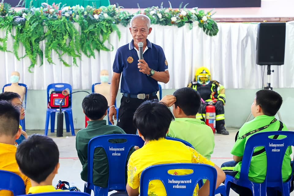 ซึ่งโครงการนี้จัดขึ้นเพื่อให้นักเรียนในสถานศึกษาได้มีความรู้ในเรื่องการฝึกใช้เครื่องดับเพลิงแบบต่างๆ การอพยพหนีไฟ การฝึกเคลื่อนย้ายผู้ประสบภัยด้วยมือและอุปกรณ์รอบตัว สามารถเป็นผู้นำในการอพยพหนีไฟได้อย่างปลอดภัย ซึ่งการฝึกซ้อมแผนในครั้งนี้ได้รับเกียรติจากเจ้าหน้าที่เทศบาลนครระยอง มาเป็นวิทยากรในการบรรยายและฝึกปฏิบัติ เพื่อให้ผู้เข้าร่วมการอบรมมีทักษะในการอพยพหนีไฟอย่างถูกต้องและปลอดภัยเมื่อเกิดเหตุการณ์ดังกล่าวในภายภาคหน้าต่อไป