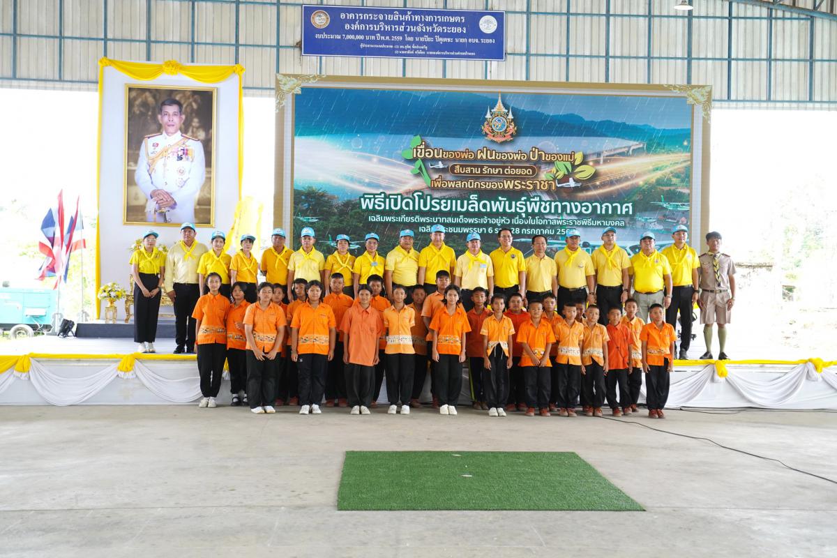 วันที่ 18 กรกฎาคม 2567 เวลา 10.00 น. องค์การบริหารส่วนจังหวัดระยองนำโดย นางสาวคนึงนิตย์ กมุทชาติ หัวหน้าฝ่ายส่งเสริมการท่องเที่ยว พร้อมด้วย คณะผู้บริหารองค์กรปกครองส่วนท้องถิ่น หัวหน้าส่วนราชการ ข้าราชการ นักเรียน จิตอาสาและผู้ที่เกี่ยวข้อง เข้าร่วมพิธีเปิดโครงการโปรยเมล็ดพันธ์พืชทางอากาศ เฉลิมพระเกียรติพระบาทสมเด็จพระเจ้าอยู่หัว เนื่องในโอกาสพระราชพิธีมหามงคลเฉลิมพระชนมพรรษา 6 รอบ 28 กรกฎาคม 2567 โดยมีนายกำธร เวหน รองผู้ว่าราชการจังหวัดระยอง เป็นประธานในพิธี ณ อาคารกระจายสินค้าการเกษตร องค์การบริหารส่วนตำบลบ้านแลง อำเภอเมือง จังหวัดระยอง