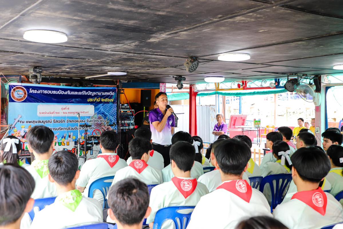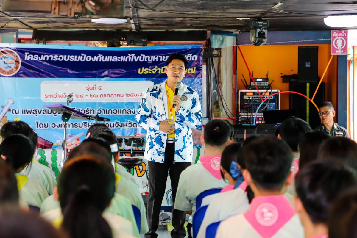 วันที่ 24 กรกฎาคม 2567 เวลา 13.00 น. นายสมเกียรติ ยุพาพิน รองปลัดองค์การบริหารส่วนจังหวัดระยอง ให้เกียรติเป็นประธานในการเปิดโครงการอบรมป้องกันและแก้ไขปัญหายาเสพติด ประจำปี 2567 (รุ่นที่ 5) โดยมี จ.อ.โสภณ อบรม หัวหน้าฝ่ายป้องกันและบรรเทาสาธารณภัย เป็นผู้กล่าวรายงาน พร้อมด้วย นายพายัพ ผ่องใส เลขานุการสมาคมกีฬาแห่งจังหวัดระยอง, นายศักดา สรรเสริญ ผู้อำนวยการโรงเรียนวังจันทร์วิทยา และเจ้าหน้าที่ที่เกี่ยวข้องเข้าร่วมโครงการอย่างพร้อมเพรียง ซึ่งได้รับเกียรติจาก นายก้าวไกล กตะศิลา ตำรวจตระเวนชายแดนที่ 11 จังหวัดจันทบุรี, นายจารึก อุดจันทึก ตำรวจตระเวนชายแดนที่ 11 จังหวัดจันทบุรี, นางสาวดรรชนี คงช่วย ผู้อำนวยการโรงเรียนบ้านสามแยกน้ำเป็น, นายสายัณห์ มาลีบํารุง ครูศูนย์ส่งเสริมการเรียนรู้เขาชะเมา, นายเชิดศักดิ์ รัชสมบัติ ข้าราชการบำนาญ มาร่วมให้ความรู้แก่ผู้เข้าร่วมโครงการ ณ แพสุขสมบูรณ์รีสอร์ท อำเภอแกลง จังหวัดระยอง