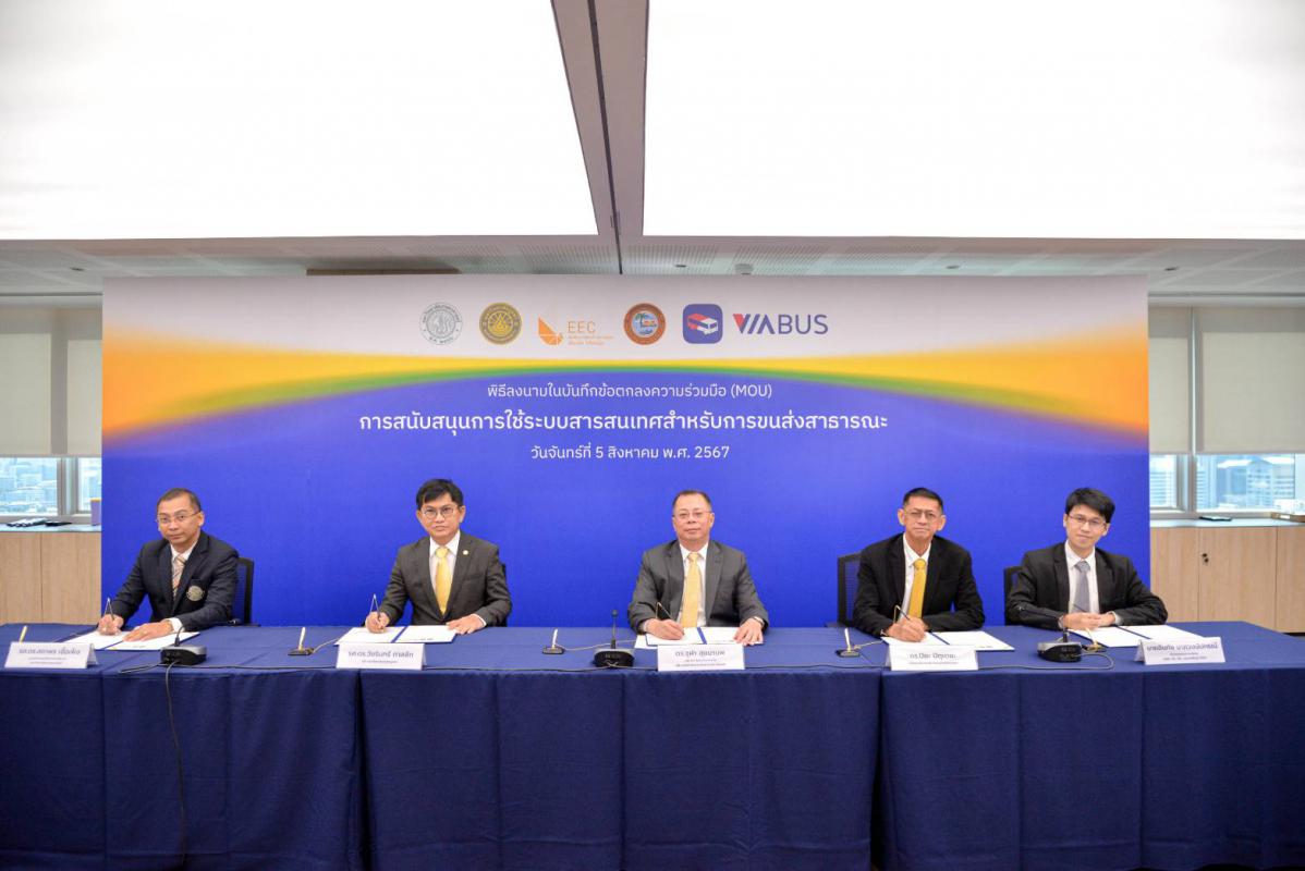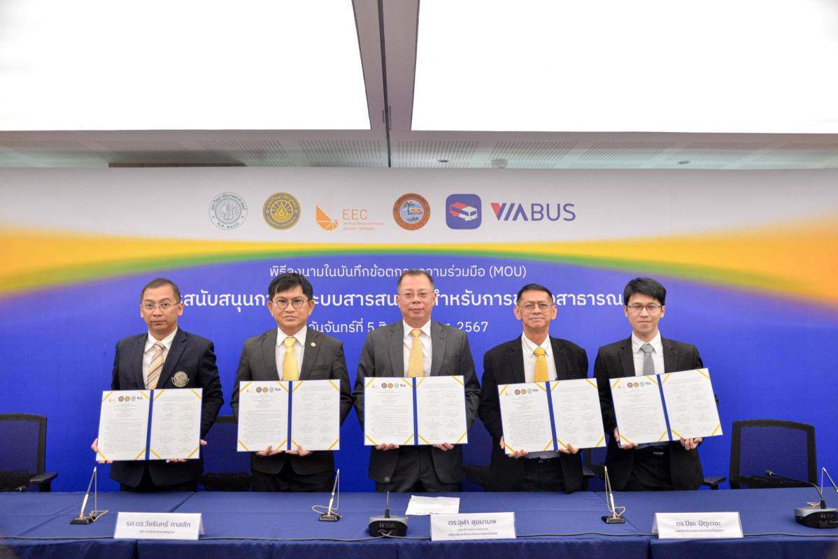 วันที่ 5 สิงหาคม 2567 ณ สำนักงานอีอีซี นายปิยะ ปิตุเตชะ นายกองค์การบริหารส่วนจังหวัดระยอง ร่วมลงนามบันทึกข้อตกลงความร่วมมือ (MOU) การสนับสนุนการใช้ระบบสารสนเทศสำหรับการขนส่งสาธารณะ ร่วมกับ ดร.จุฬา สุขมานพ เลขาธิการคณะกรรมการนโยบายเขตพัฒนาพิเศษภาคตะวันออก หรือ อีอีซี, รศ.ดร.วัชรินทร์ กาสลัก อธิการบดีมหาวิทยาลัยบูรพา, รศ.ดร.สถาพร เชื้อเพ็ง รองอธิการบดีมหาวิทยาลัยเกษตรศาสตร์วิทยาเขตศรีราชา และนายอินทัช มาศวงษ์ปกรณ์ ประธานกรรมการบริหาร บริษัท เวีย กรุ๊ป (ประเทศไทย) จำกัด โดยมีวัตถุประสงค์เพื่อผลักดันให้เกิดการใช้ระบบเทคโนโลยีสารสนเทศผ่านระบบแอปพลิเคชั่นการให้บริการรถโดยสารสาธารณะ ผ่านความร่วมมือจากหน่วยงานดังกล่าว ซึ่งความร่วมมือ MOU ในครั้งนี้จะช่วยให้เกิดการพัฒนาการยกระดับการคมนาคมขนส่งแบบบูรณาการ ทันสมัยยิ่งขึ้น ช่วยเสริมสร้างเศรษฐกิจ ก่อให้เกิดประโยชน์ต่อประชาชนผู้เดินทาง และสามารถยกระดับการเดินทางด้วยรถโดยสารสาธารณะในพื้นที่เขตพัฒนาพิเศษภาคตะวันออกต่อไป