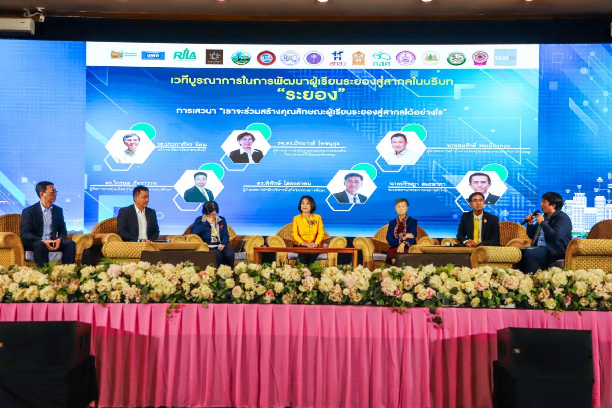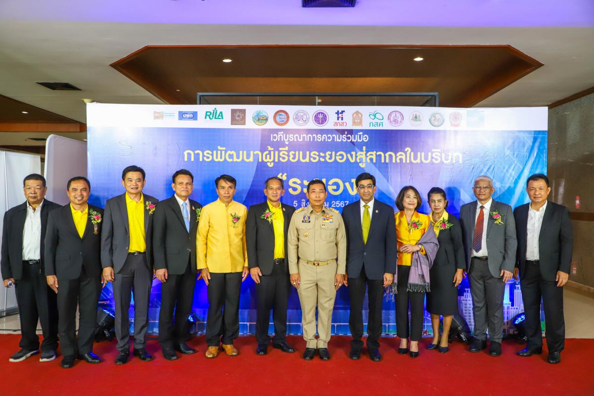 วันที่ 5 สิงหาคม 2567 เวลา 13.30 น. ณ โรงแรมสตาร์ คอนเวนชั่น ระยอง นายประสานต์ พฤกษาชาติ รองนายกองค์การบริหารส่วนจังหวัดระยอง (2) ลงนามบันทึกข้อตกลงคุณลักษณะผู้เรียนระยองสู่สากลตามบริบทจังหวัดระยอง โดยมีนายไตรภพ วงศ์ไตรรัตน์ ผู้ว่าราชการจังหวัดระยอง เป็นประธานในพิธีฯ พร้อมด้วย หน่วยงานที่เกี่ยวข้องจำนวน 16 หน่วยงานร่วมลงนามบันทึกข้อตกลงโดยพร้อมเพรียงกัน ซึ่งภายในงานได้มีการบรรยายหัวข้อ “การจัดการศึกษาเชิงพื้นที่ทางออกการศึกษาไทย” “การจัดการศึกษาในบริบทระยองสู่การขับเคลื่อนเศรษฐกิจและสังคม” และในหัวข้อ “การเสวนาเราจะร่วมสร้างคุณลักษณะผู้เรียนระยองสู่สากลได้อย่างไร” โดยมีผู้ร่วมบรรยายพิเศษและร่วมเวทีเสวนา ประกอบด้วย นางสาวสลารีวรรณ ทัพทวี รองผู้ว่าราชการจังหวัดระยอง, ดร.สมเกียรติ ตั้งกิจวานิชย์ ประธานสถาบันวิจัยเพื่อพัฒนาประเทศ, ดร.สาธิต ปิตุเตชะ ประธานที่ปรึกษาคณะกรรมการสถาบันการเรียนรู้ของคนทุกช่วงวัยจังหวัดระยอง, รศ.ประภาภัทร นิยม อธิการบดีสถาบันอาศรมศิลป์, ดร.ไกรยส ภัทราวาท ผู้จัดการกองทุนเพื่อความเสมอภาคทางการศึกษา, รศ.ดร.ปัทมาวดี โพชนุกูล ผู้อำนวยการสำนักงานคณะกรรมการส่งเสริมวิทยาศาสตร์วิจัยและนวัตกรรม ดร.พิทักษ์ โสตถยาคม ผู้อำนวยการสำนักงานบริหารพื้นที่นวัตกรรมการศึกษา, นายสมศักดิ์ พะเนียงทอง ผู้อำนวยการสถาบันการเรียนรู้ของคนทุกช่วงวัยจังหวัดระยอง และนายปรัชญา สมะลาภา รองประธานกรรมการหอการค้าไทย ณ ห้องสุนทรภู่ โรงแรมสตาร์ คอนเวนชั่น จังหวัดระยอง