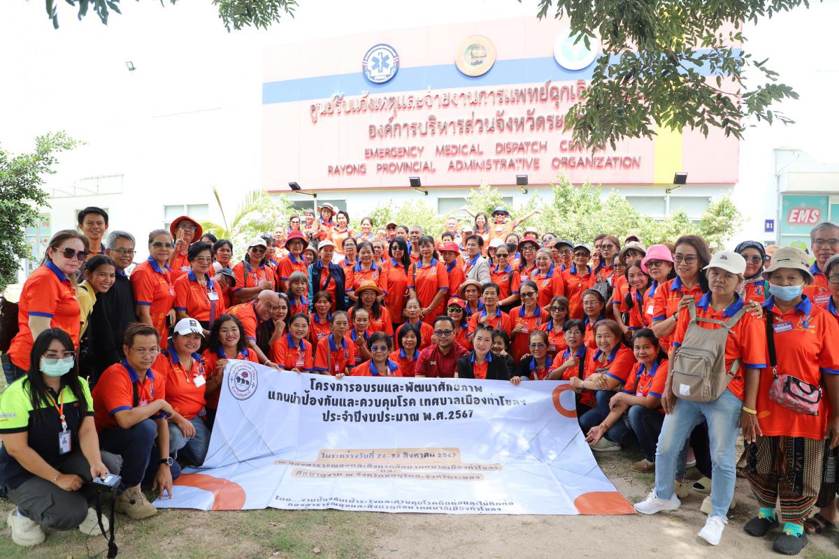 วันที่ 28 สิงหาคม 2567 เวลา 09.00 น. นายไพรฑูรย์ รัตนพรวารีสกุล สมาชิกสภาองค์การบริหารส่วนจังหวัดระยอง อำเภอเมืองระยอง เขต 7 พร้อมด้วยนายสุริยะ ศิริวัฒน์ โรงพยาบาลส่งเสริมสุขภาพตำบล รักษาราชการแทน ผู้อำนวยการกองสาธารณสุขและเจ้าหน้าที่ที่เกี่ยวข้อง ร่วมให้การต้อนรับคณะศึกษาดูงานจากเทศบาลเมืองท่าโขลง จังหวัดปทุมธานี ซึ่งนำคณะโดย นายสมหมาย โสนามิตร รองนายกเทศมนตรี ปฏิบัติราชการแทน นายกเทศมนตรีเมืองท่าโขลง พร้อมคณะจำนวน 350 คน โดยมาศึกษาดูงานเกี่ยวกับระบบการแพทย์ฉุกเฉินและการดูแลสุขภาพเชิงรุก ณ ห้องประชุม 1 ชั้น 3 อบจ.ระยอง และสนามกีฬากลางจังหวัดระยอง