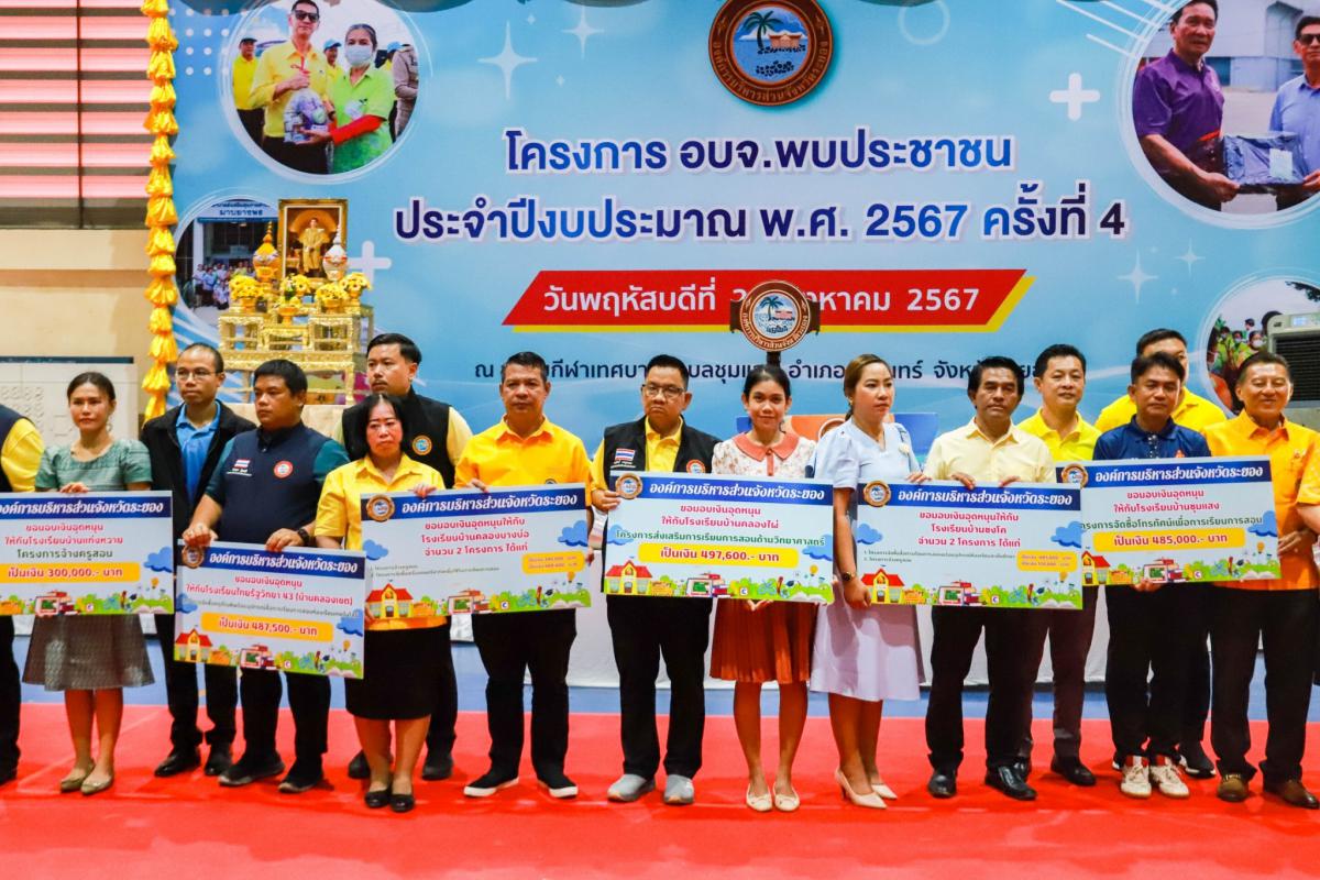 วันที่ 29 สิงหาคม 2567 เวลา 13.00 น. องค์การบริหารส่วนจังหวัดระยอง นำโดย นายปิยะ ปิตุเตชะ นายกองค์การบริหารส่วนจังหวัดระยอง พร้อมด้วย คณะผู้บริหาร สมาชิกสภาองค์การบริหารส่วนจังหวัดระยอง หัวหน้าส่วนราชการ และเจ้าหน้าที่ที่เกี่ยวข้องเข้าร่วมโครงการ อบจ.พบประชาชน ประจำปีงบประมาณ พ.ศ. 2567 ครั้งที่ 4 ณ สนามกีฬาเทศบาลตำบลชุมแสง อำเภอวังจันทร์ จังหวัดระยอง โดยมี นายมนัส สมศักดิ์ สมาชิกสภาองค์การบริหารส่วนจังหวัดระยอง เขต 1 อำเภอวังจันทร์ เป็นผู้กล่าวรายงาน ซึ่งโครงการดังกล่าวมีวัตถุประสงค์เพื่อแก้ไขปัญหาความเดือดร้อนให้กับประชาชน และนำกิจกรรม งานบริการของส่วนราชการ และหน่วยงานต่างๆ ออกให้บริการประชาชนนอกสถานที่ ภายในงานได้มีกิจกรรมต่างๆ เช่น การมอบข้าวของเครื่องอุปโภคบริโภคผู้ยากไร้, การจำหน่ายสินค้าราคาถูก, กิจกรรมการแจกต้นไม้ และกิจกรรมอื่นๆอีกมากมาย รวมไปถึงการลงพื้นที่ตรวจเยี่ยมสถานีอนามัยเฉลิมพระเกียรติ 60 พรรษา นวมินทราชินี บ้านน้ำใส,โรงพยาบาลส่งเสริมสุขภาพตำบลบ้านชำฆ้อ และโรงพยาบาลส่งเสริมสุขภาพตำบลบ้านเขาตาอิ๋น เพื่อรับฟังปัญหา พร้อมมอบนโยบายและแนวทางแก้ไขต่อไป