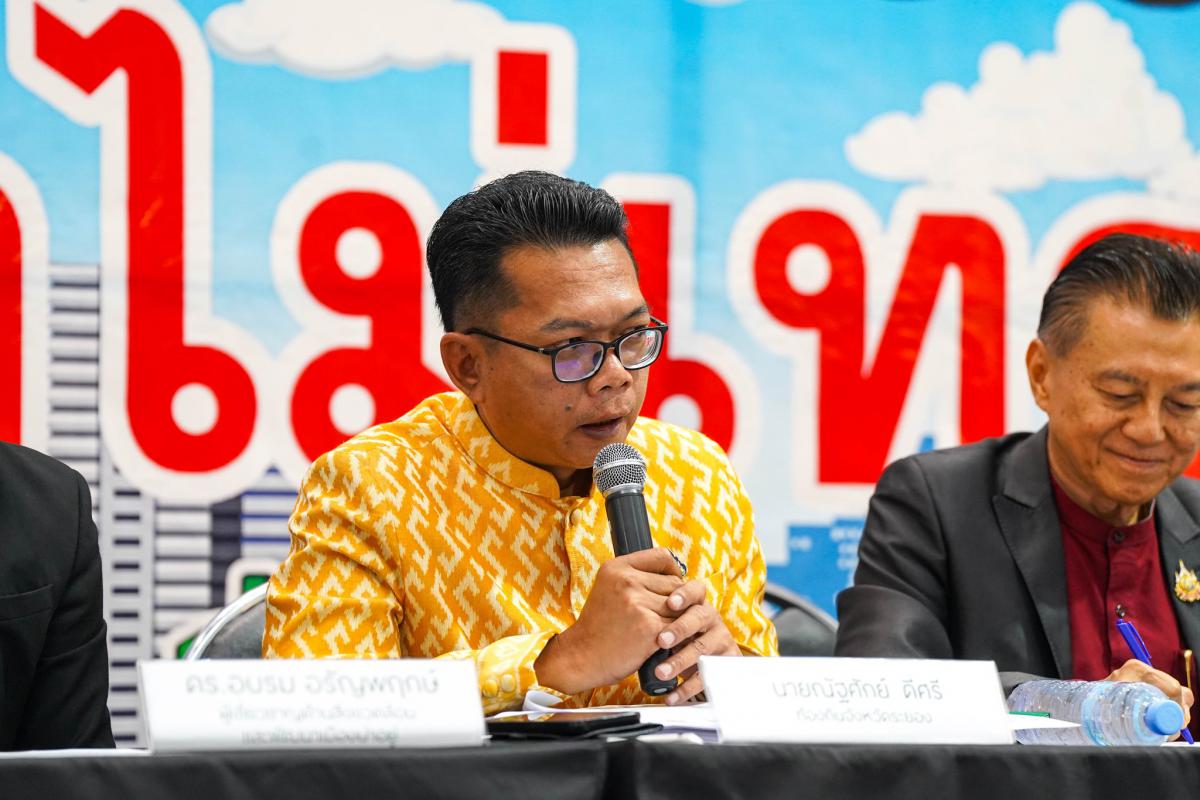 วันที่ 26 กันยายน 2567 เวลา 13.30 น. นายมนตรี ชนะชัยวิบูลวัฒน์ ที่ปรึกษานายกองค์การบริหารส่วนจังหวัดระยอง พร้อมด้วย นายสุริยะ ศิริวัฒน์ โรงพยาบาลส่งเสริมสุขภาพตำบล รักษาราชการแทน ผู้อำนวยการกองสาธารณสุข, นายณัฐศักย์ ดีศรี ท้องถิ่นจังหวัดระยอง, นางยุวพรรณ ทับแก้ว ปลัดอำเภอบ้านฉาง, ดร.อบรม อรัญพฤกษ์ ผู้เชี่ยวชาญด้านสิ่งแวดล้อม และพัฒนาเมืองน่าอยู่, ดร.กฤษณ์ พงษ์เทพิน ผู้ช่วยผูอำนวยการฝ่ายชุมชนสัมพันธ์ กลุ่มบริษัทกัลฟ์ เอ็มทีพี แอลเอ็น จีเทอร์มินอล จำกัด (GMTP), นายภูวิศธรณ์ เลิศวีระศิริกุล ผู้จัดการทั่วไปฝ่ายบริหาร ศูนย์การค้าโรบินสันไลฟ์สไตล์ บ้านฉาง และผู้ที่เกี่ยวข้องเข้าร่วมงานแถลงข่าวเปิดตัวโครงการ “ระยองไม่เทรวม” เปลี่ยนขยะเป็นประโยชน์ สิ่งแวดล้อมเมืองระยองยั่งยืน ซึ่งจัดขึ้นโดยกลุ่มภาคประชาสังคมด้านสิ่งแวดล้อมในจังหวัดระยอง ได้แก่ สื่อมวลชน เครือข่ายนักวิชาการ เกษตรกรรุ่นใหม่ Yong Smart Farmer และภาคอุตสาหกรรมเอกชน โดยมีวัตถุประสงค์ เพื่อเป็นหน่วยปฏิบัติการความร่วมมือและปฏิบัติการทางสังคม โดยการนำองค์ความรู้จากนักวิชาการและองค์กรผู้เชี่ยวชาญด้านนวัตกรรมฐานชีวภาพและนวัตกรรมจุลินทรีย์ที่มีประสิทธิภาพ มาใช้จัดการกับขยะเปียก เศษอาหาร ขยะอินทรีย์ ในเขตพื้นที่จังหวัดระยอง ส่งเสริมการสร้างระบบการจัดการขยะต้นแบบเป็นศูนย์กลางองค์ความรู้และการปฏิบัติการแปรรูปขยะจริง ซึ่งเริ่มต้นจากนำขยะเศษอาหาร จากโรงแรม ห้างสรรพสินค้า ร้านอาหาร โรงเรียน วัดและชุมชน เข้าสู่ศูนย์การกำจัดด้วย "นวัตกรรมจุลินทรีย์ที่มีประสิทธิภาพ" และช่วยเปลี่ยนขยะให้เป็นประโยชน์ต่อไป