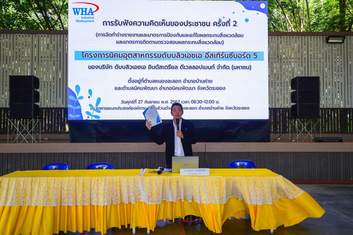 การรับฟังความคิดเห็นของประชาชนครั้งที่ 2 (การจัดทำร่างรายงานและมาตรการป้องกันและแก้ไขผลกระทบสิ่งแวดล้อม และมาตรการติดตามตรวจสอบผลกระทบสิ่งแวดล้อม) โครงการนิคมอุตสาหกรรมดับบลิวเอชเอ อีสเทิร์นซีบอร์ด 5