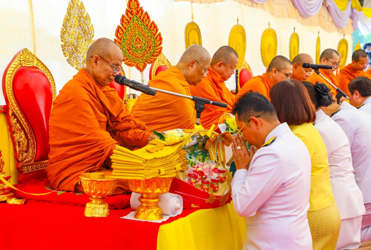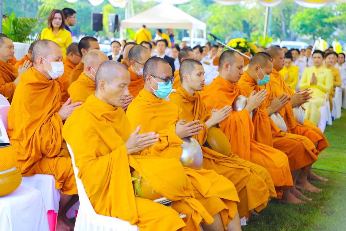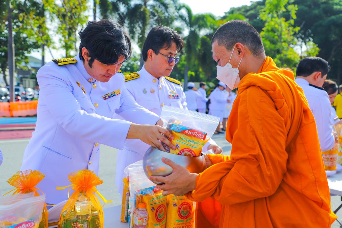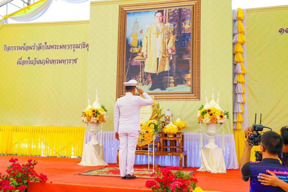 พิธีสวดพระพุทธมนต์ ทำบุญตักบาตรถวายพระราชกุศล และพิธีวางพวงมาลา เนื่องในวันนวมินทรมหาราช