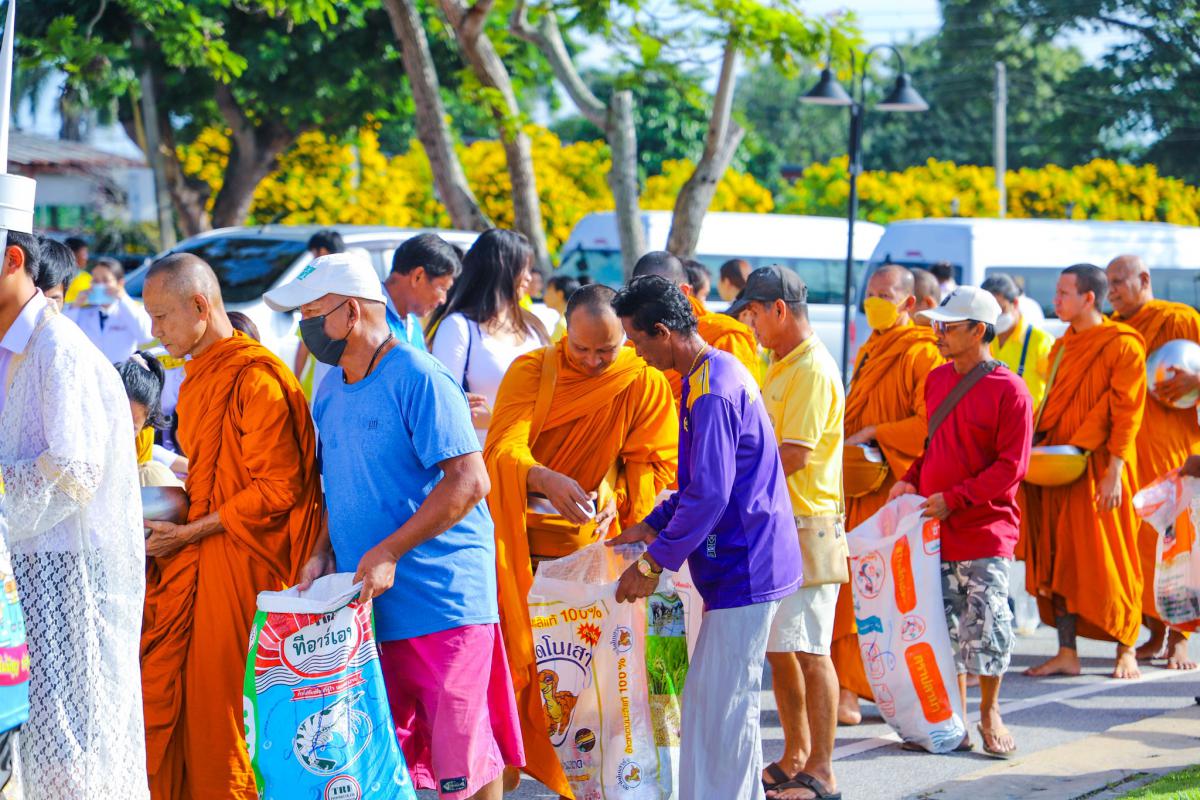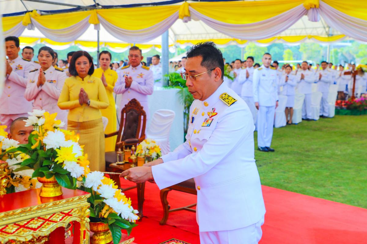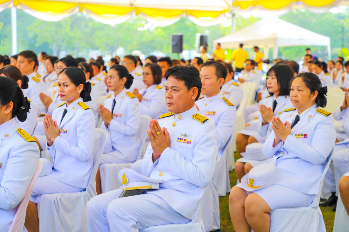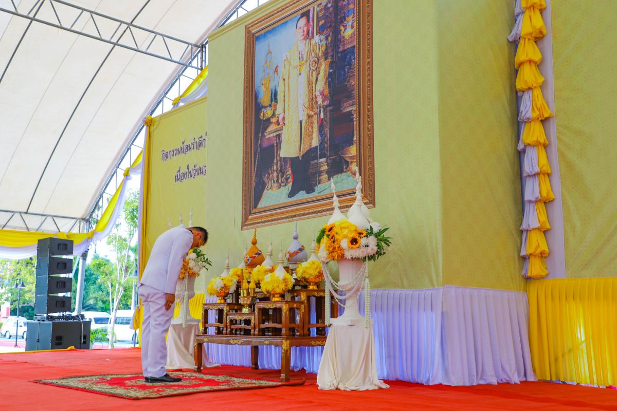 พิธีสวดพระพุทธมนต์ ทำบุญตักบาตรถวายพระราชกุศล และพิธีวางพวงมาลา เนื่องในวันนวมินทรมหาราช