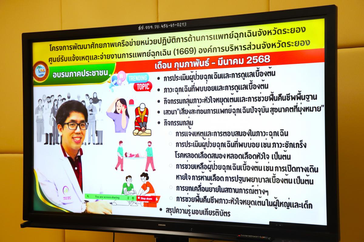ประชุมวางแผนจัดทำโครงการพัฒนาศักยภาพเครือข่ายหน่วยปฏิบัติการด้านการแพทย์ฉุกเฉินศูนย์รับแจ้งเหตุและจ่ายงานการแพทย์ฉุกเฉิน (1669) องค์การบริหารส่วนจังหวัดระยอง ครั้งที่ 1/2567