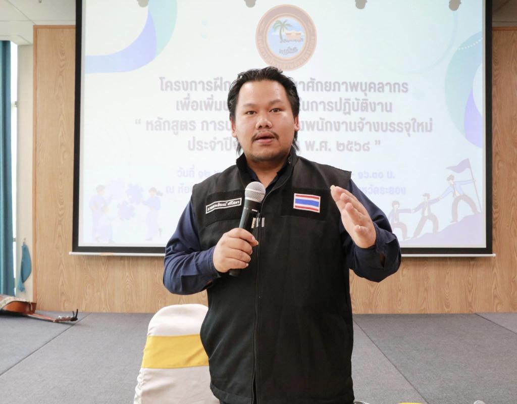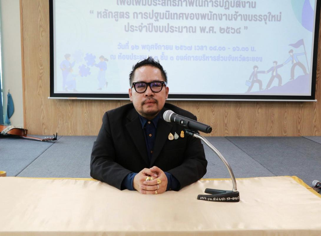 วันที่ 12 พฤศจิกายน 2567 เวลา 08.30 น. กองการเจ้าหน้าที่ องค์การบริหารส่วนจังหวัดระยอง ได้จัดโครงการฝึกอบรมพัฒนาศักยภาพบุคลากรเพื่อเพิ่มประสิทธิภาพในการปฏิบัติงาน " หลักสูตรการปฐมนิเทศพนักงานจ้างบรรจุใหม่ ประจำปีงบประมาณ พ.ศ. 2568 " สังกัดองค์การบริหารส่วนจังหวัดระยอง จำนวน 160 ราย โดยมี นายกิตติ เกียรติ์มนตรี รองนายกองค์การบริหารส่วนจังหวัดระยอง (1) เป็นประธานในการปฐมนิเทศฯ พร้อมด้วย คณะผู้บริหาร หัวหน้าส่วนราชการ ผู้อำนวยกอง ข้าราชการ และผู้ที่เกี่ยวข้อง ได้ร่วมกล่าวต้อนรับและแนะนำชี้แจงแนวทางการปฏิบัติหน้าที่ในการเป็นพนักงานจ้าง สังกัดองค์การบริหารส่วนจังหวัดระยอง และในช่วงบ่ายได้รับเกียรติจาก อาจารย์อารมย์ ขวัญม่วง และทีมงานแจ่มบรรเจิด มาร่วมให้ความรู้กับผู้เข้าร่วมโครงการฯ ในหัวข้อเรื่อง ความสัมพันธ์และทัศนคติที่ดีต่อองค์กร และกิจกรรมอื่นๆ อีกมากมาย ณ องค์การบริหารส่วนจังหวัดระยอง