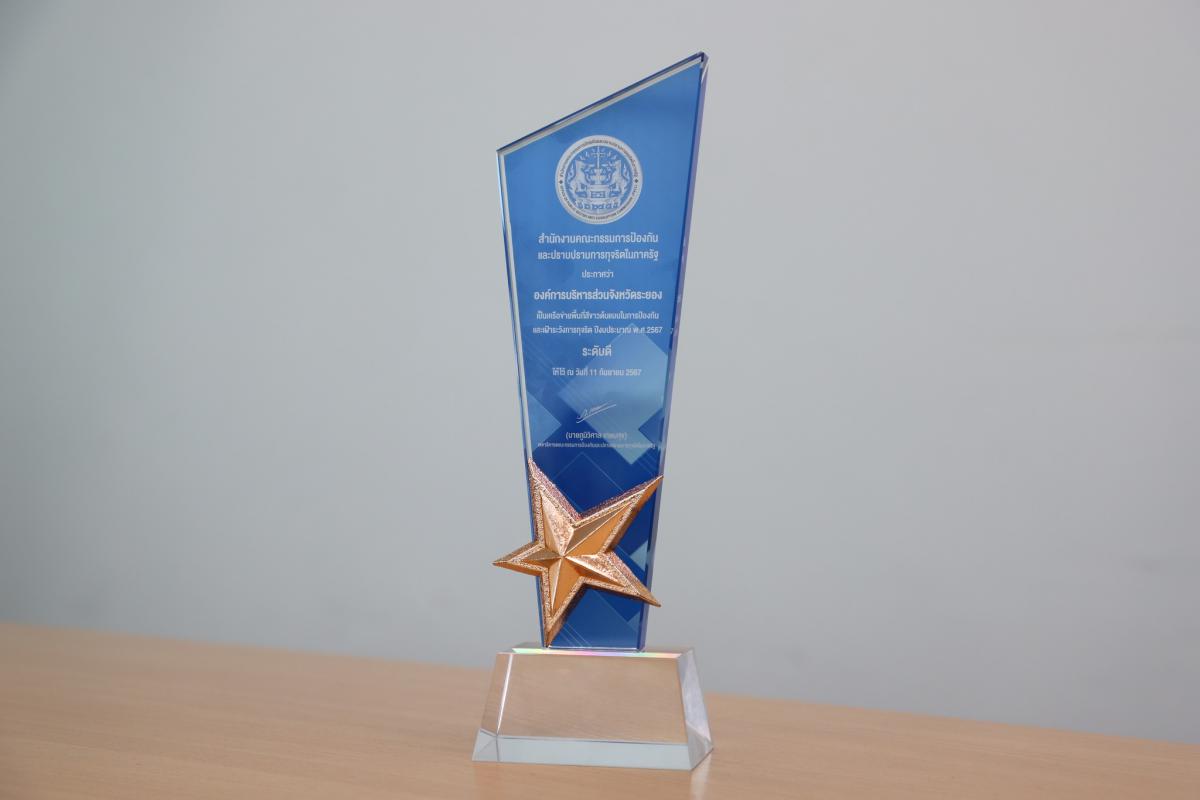 อบจ.ระยองได้รับรางวัลเครือข่ายพื้นที่สีขาวต้นแบบในการป้องกันและเฝ้าระวังการทุจริต ประจำปีงบประมาณ พ.ศ. 2567