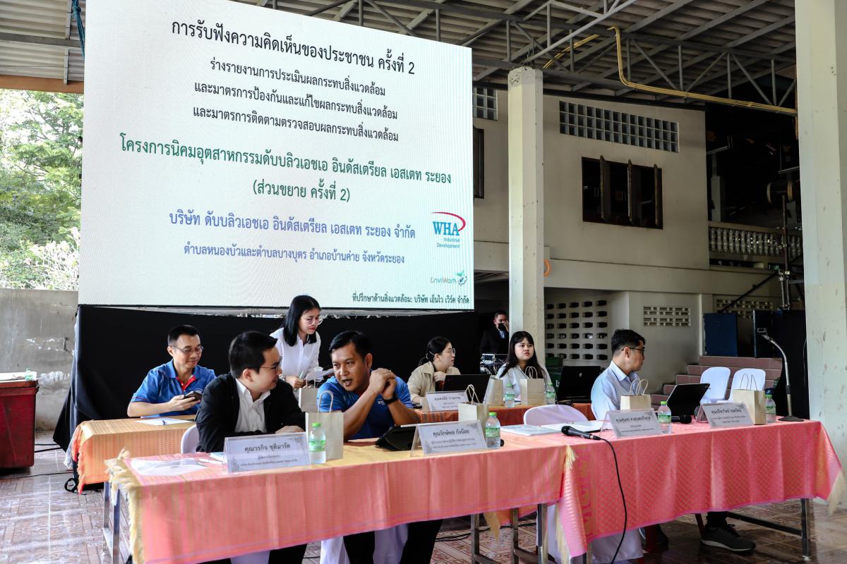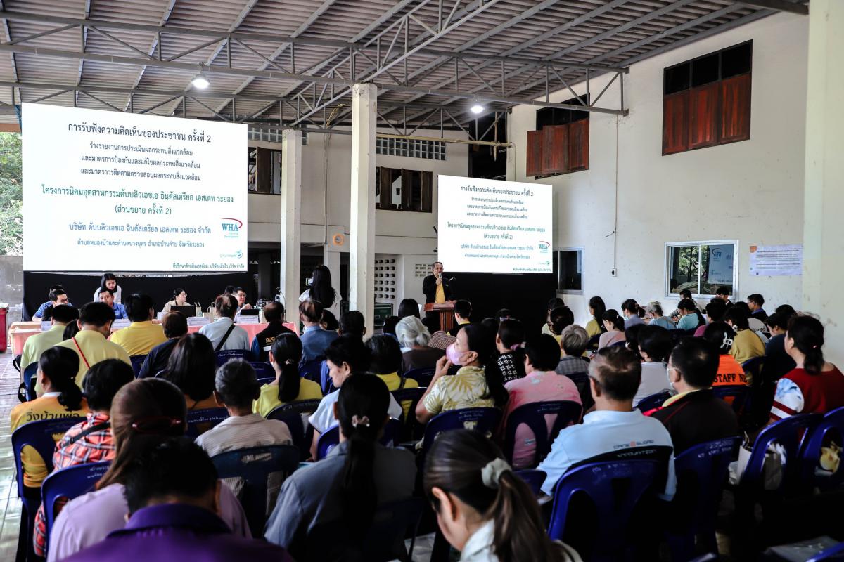 การรับฟังความคิดเห็นของประชาชน ครั้งที่ 2 (ร่างรายงานการประเมินผลกระทบส่งแวดล้อม และมาตรการป้องกันและแก้ไขผลกระทบสิ่งแวดล้อมและมาตรการติดตามตรวจสอบผลกระทบสิ่งแวดล้อม) โครงการนิคมอุตสาหกรรมดับบลิวเอชเอ อินดัสเตรียล เอสเตท ระยอง (ส่วนขยาย ครั้งที่ 2)