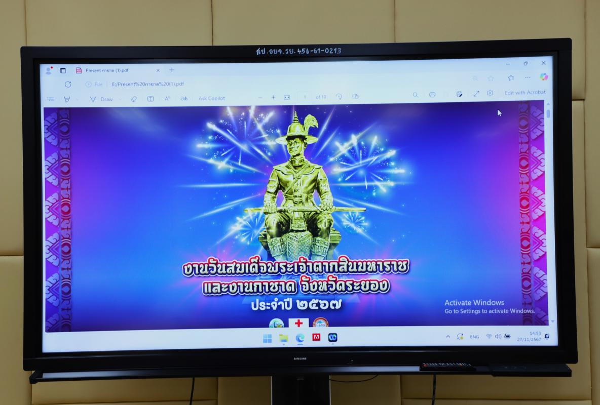 วันที่ 27 พฤศจิกายน 2567 เวลา 14.00 น. นายสุรินทร์ แสงทอง ปลัดองค์การบริหารส่วนจังหวัดระยองเป็นประธานการประชุมคณะทำงานและมอบหมายภารกิจการปฏิบัติงานวันสมเด็จพระเจ้าตากสินมหาราช จังหวัดระยอง พร้อมด้วย นางลัดดาวัลย์ ชาไธสง เลขานุการองค์การบริหารส่วนจังหวัด รักษาราชการแทน ผู้อำนวยการสำนักยุทธศาสตร์และงบประมาณ หน่วยงานราชการ องค์กรปกครองส่วนท้องถิ่น และเจ้าหน้าที่ที่เกี่ยวข้อง เข้าร่วมการประชุมหารือแนวทางปฏิบัติ หลักเกณฑ์และรูปแบบการแข่งขันในโครงการรวมพลรำวงคนระยอง ณ ห้องประชุม 2 ชั้น 3 องค์การบริหารส่วนจังหวัดระยอง