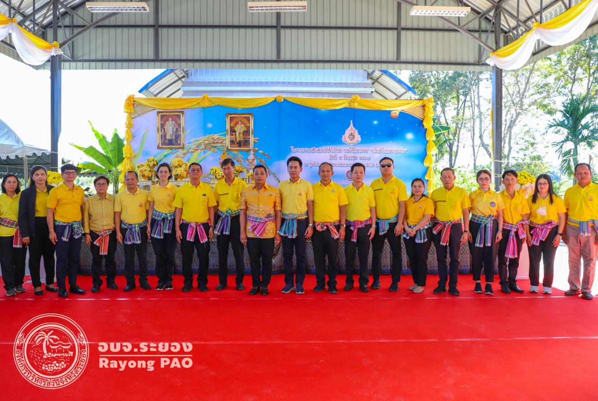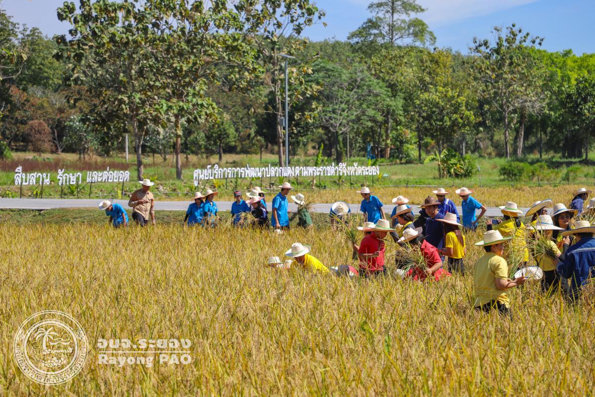 วันที่ 5 ธันวาคม 2567 เวลา 09.00 น. นายปิยะ ปิตุเตชะ นายกองค์การบริหารส่วนจังหวัดระยอง พร้อมด้วย คณะผู้บริหาร หัวหน้าส่วนราชการ ผู้นำองค์กรปกครองส่วนท้องถิ่น คณะครู นักเรียน และผู้ที่เกี่ยวข้องเข้าร่วมโครงการงานสืบสานวิถีข้าวไทย ภายใต้กิจกรรม “เกี่ยวข้าวตามรอยพ่อ” โดยมี นายไตรภพ วงศ์ไตรรัตน์ ผู้ว่าราชการจังหวัดระยอง เป็นประธานกล่าวเปิดโครงการฯ ซึ่งโครงการดังกล่าวจัดขึ้นเพื่อน้อมรำลึกถึงพระมหากรุณาธิคุณของพระบาทสมเด็จ พระบรมชนกาธิเบศร มหาภูมิพลอดุลยเดชมหาราช บรมนาถบพิตร และเพื่อเป็นการสืบสาน รักษา และต่อยอดถึงโครงการพระราชดำริ รวมไปถึงยังเป็นการปลูกฝังให้เยาวชนตระหนักถึงคุณค่าของข้าว วิถีชีวิตของชาวนาไทย ณ แปลงนาสาธิต ศูนย์บริการการพัฒนาปลวกแดงตามพระราชดำริ จังหวัดระยอง