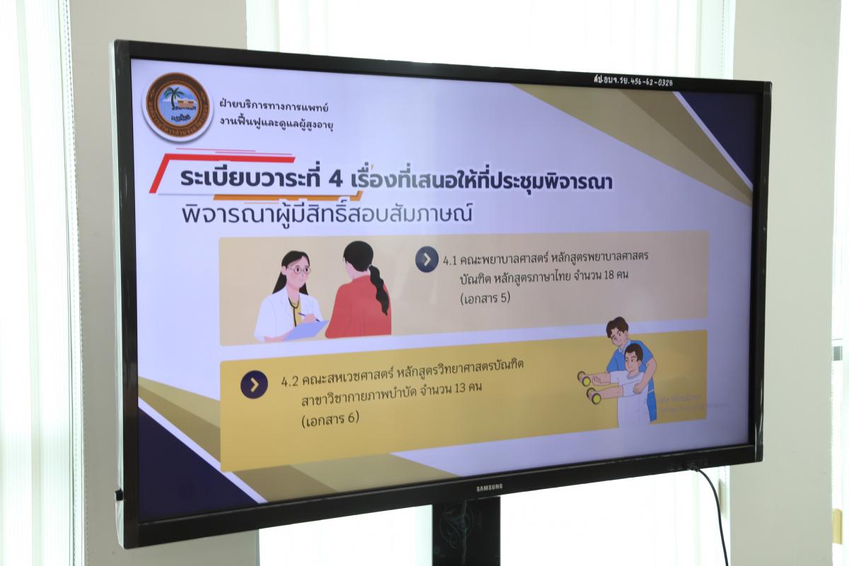 วันที่ 13 ธันวาคม 2567 เวลา 13.30 น. นางณมน พุ่มพฤกษี ผู้อำนวยการกองการเจ้าหน้าที่ องค์การบริหารส่วนจังหวัดระยอง เป็นประธานประชุมคณะกรรมการพิจารณาผู้มีสิทธิ์สอบสัมภาษณ์ พร้อมด้วยคณะเจ้าหน้าที่ที่เกี่ยวข้อง ร่วมประชุม ณ ห้องประชุมชั้น 8 ซึ่งองค์การบริหารส่วนจังหวัดระยอง ได้ดำเนินการรับสมัครนักเรียนตามโครงการสนับสนุนทุนการศึกษาด้านสาธารณสุข ในความร่วมมือระหว่างองค์การบริหารส่วนจังหวัดระยอง มหาวิทยาลัยบูรพา และสมาคมเพื่อนชุมชน ประจำปีการศึกษา 2568 ซึ่งได้ประกาศรับสมัครผู้ประสงค์ขอรับทุนการศึกษาตามโครงการฯ จำนวนทั้งสิ้น 8 ทุน ประกอบด้วย คณะพยาบาลศาสตร์ หลักสูตรพยาบาลศาสตรบัณฑิต หลักสูตรภาษาไทย จำนวน 5 ทุน มีผู้สมัคร 18 คน และคณะสหเวชศาสตร์ หลักสูตรวิทยาศาสตรบัณฑิต สาขาวิชากายภาพบำบัด จำนวน 3 ทุน มีผู้สมัคร 13 คน ดังนั้นเพื่อให้การดำเนินงานตามโครงการฯ เป็นไปด้วยความเรียบร้อย บรรลุวัตถุประสงค์ โดยประกาศรายชื่อผู้มีสิทธิ์เข้ารับการสอบสัมภาษณ์ ในวันที่ 17 ธันวาคม 2567 นี้ ผ่านทางเว็บไซค์ www.rayong-pao.go.th