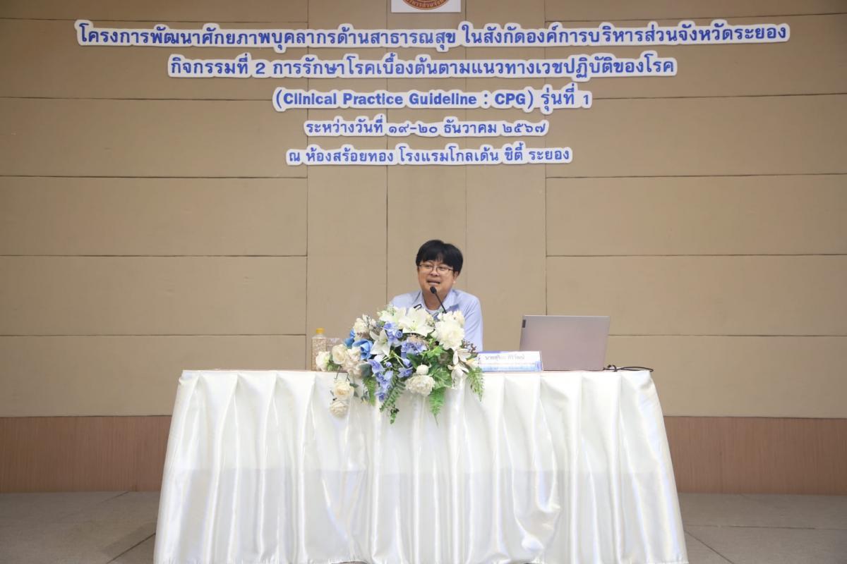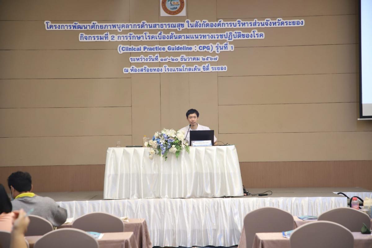โรงพยาบาลส่งเสริมสุขภาพตำบล กองสาธารณสุข จัดทำโครงการพัฒนาศักยภาพบุคลากรด้านสาธารณสุข ในสังกัดองค์การบนิหารส่วนจังหวัดระยอง และศูนย์บริการสุขภาพ โดยมีวัตถุประสงค์เพื่อพัฒนาศักยภาพบุคลากร ให้มีความรู้ความเข้าใจในการปฏิบัติงาน และทักษะเกี่ยวกับงานด้านการแพทย์และสาธารณสุขของหน่วยบริการสาธารณสุข โดยแบ่งออกเป็น 5 กิจกรรม ซึ่งกิจกรรมที่ 1 เป็นกิจกรรมพัฒนาศักยภาพบุคลากรเพื่อการบันทึกข้อมูลด้านการบริการสาธารณสุข (E-Claim) ซึ่งได้อบรมเสร็จเรียบร้อยแล้ว และในครั้งนี้เป็นกิจกรรมที่ 2 กิจกรรมพัฒนาศักยภาพบุคลากรด้านการพัฒนาศักยภาพบุคลากรด้านการรักษาโรคเบื้องต้นตามแนวทางเวชปฏิบัติของโรค(Clinical Practice Guideline : CPG) แบ่งออกเป็น 2 รุ่น รุ่นที่ 1 ระหว่างวันที่ 19-20 ธันวาคม 2567 และ รุ่นที่ 2 ระหว่างวันที่ 23-24 มกราคม 2567 โดยผู้เข้าร่วมการอบรมในครั้งนี้ จำนวน 200 คน
