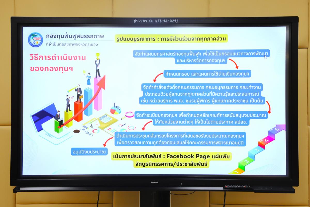 วันอังคารที่ 7 มกราคม 2568 เวลา 09.00 น. นายเสรี เพ็งสาท รองปลัดองค์การบริหารส่วนจังหวัดระยอง เป็นประธานการศึกษาดูงานแลกเปลี่ยนเรียนรู้การดำเนินงานและบริหารจัดการกองทุนฟื้นฟูสมรรถภาพ ระดับจังหวัด พร้อมด้วย นางเสาวณีย์ อุ่ยตระกูล ผู้ทรงคุณวุฒิ, นายสุริยะ ศิริวัฒน์ ผู้อำนวยการกองสาธารณสุข กองทุนฟื้นฟูสมรรถภาพที่จำเป็นต่อสุขภาพจังหวัดระยอง พร้อมเจ้าหน้าที่ที่เกี่ยวข้อง ร่วมต้อนรับคณะศึกษาดูงานจากสำนักงานหลักประกันสุขภาพแห่งชาติ เขต 6 ระยอง ร่วมกับสำนักงานหลักประกันสุขภาพ แห่งชาติ เขต 5 ราชบุรี จำนวน 20 คน ณ ห้องประชุม 2 ชั้น 3 องค์การบริหารส่วนจังหวัดระยอง