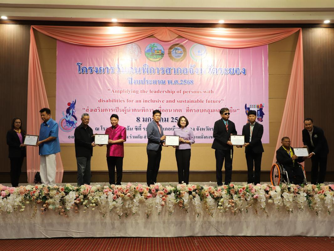 จังหวัดระยอง ร่วมกับ องค์การบริหารส่วนจังหวัดระยอง และสำนักงานพัฒนาสังคมและความมั่นคงของมนุษย์จังหวัดระยอง ได้จัดโครงการวันคนพิการสากลจังหวัดระยอง ประจำปีงบประมาณ 2568 การปฏิรูปสู่การพัฒนาเพื่อคนทั้งมวล พลังนวัตกรรมสู่โลกที่เข้าถึงได้และเป็นธรรม ขึ้นเพื่อส่งเสริมให้คนพิการและครอบครัว ผู้ดูแลคนพิการ ได้มีโอกาสเข้าร่วมกิจกรรมทางสังคม และเข้าถึงบริการด้านต่างๆที่เป็นประโยชน์ในด้านการพัฒนาคุณภาพชีวิตของคนพิการ ซึ่งภายในงานได้มีการมอบเกียรติบัตรให้แก่หน่วยงานและสถานประกอบการที่สนับสนุนการจัดงาน พร้อมทั้งมอบช่อดอกไม้แสดงความยินดีแก่ผู้พิการต้นแบบจังหวัดระยอง เวทีเสาวนา มอบทุนการศึกษาแก่เด็กพิการจำนวน 20 ทุน และบูธแสดงสินค้าผลิตภัณฑ์งานฝีมือจากผู้พิการ เพื่อเป็นการส่งเสริมการประกอบอาชีพให้แก่ผู้พิการในจังหวัดระยองต่อไป