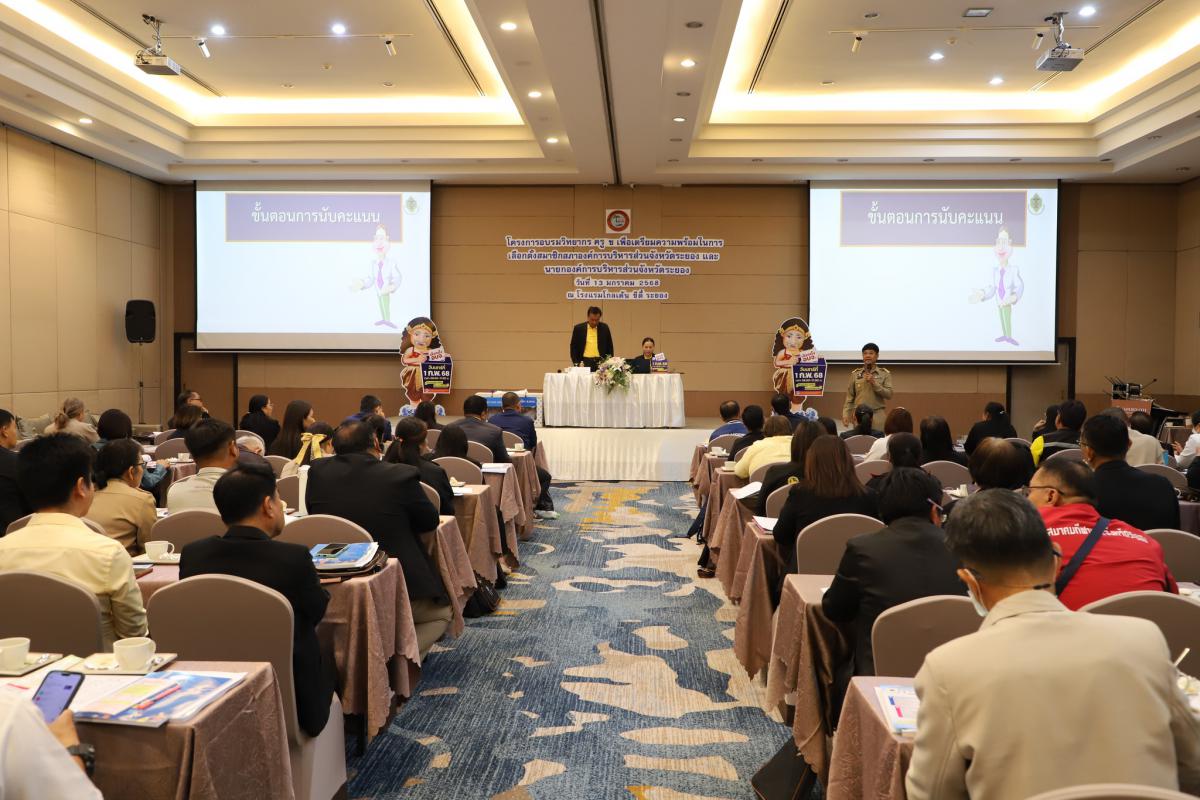 วันที่ 13 มกราคม 2568 เวลา 09.00 น. นายสุรินทร์ แสงทอง ปลัดองค์การบริหารส่วนจังหวัดระยอง เป็นประธานเปิดโครงการอบรมวิทยากร ครู ข เพื่อเตรียมความพร้อมในการเลือกตั้งสมาชิกสภาองค์การบริหารส่วนจังหวัดระยอง และนายกองค์การบริหารส่วนจังหวัดระยอง พร้อมด้วยหัวหน้าส่วนราชการ ข้าราชการและเจ้าหน้าที่ที่เกี่ยวข้อง เข้าร่วมโครงการฯอย่างพร้อมเพียงกัน ณ โรงแรมโกลเด้น ซิตี้ ระยอง