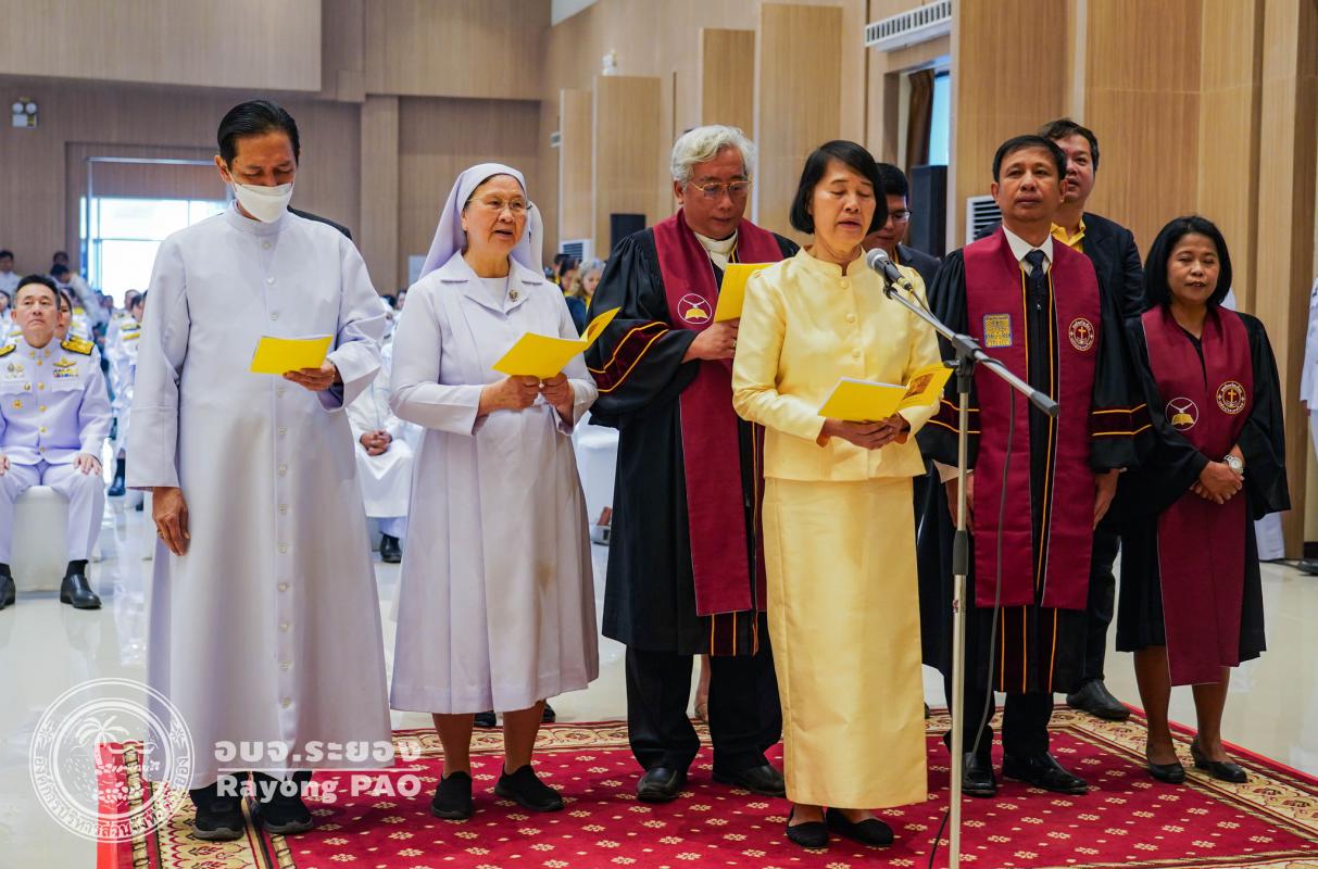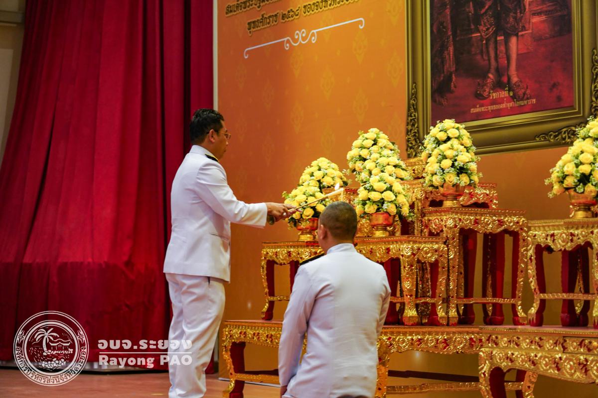 วันที่ 14 มกราคม 2568 เวลา 07.30 น. นางศุภลักษณ์ มงคลฉัตร หัวหน้าฝ่ายบริหารงานทั่วไป พร้อมด้วยข้าราชการสังกัดอบจ.ระยอง เข้าร่วมกิจกรรมเฉลิมพระเกียรติพระบาทสมเด็จพระเจ้าอยู่หัว เนื่องในโอกาสพระราชพิธีสมมงคลพระชนมายุเท่าพระบาทสมเด็จพระพุทธยอดฟ้าจุฬาโลกมหาราช สมเด็จพระปฐมบรมกษัตริยาธิราชแห่งพระราชวงศ์จักรี พุทธศักราช 2568 โดยมีนายไตรภพ วงศ์ไตรรัตน์ ผู้ว่าราชการจังหวัดระยอง เป็นประธานจุดธูปเทียนบูชาพระรัตนตรัย และจุดรูปเทียนเครื่องทองน้อยเบื้องหน้าพระบรมสาทิสลักษณ์ พระบาทสมเด็จพระพุทธยอดฟ้าจุฬาโลกมหาราช พร้อมถวายดอกไม้ธูปเทียนแพเบื้องหน้าพระบรมฉายาลักษณ์พระบาทสมเด็จพระเจ้าอยู่หัว และกล่าวถวายราชสดุดีเฉลิมพระเกียรติถวายพระพรชัยมงคล และนำผู้ร่วมพิธีทำบุญตักบาตร ณ หอประชุมใหญ่ ศูนย์ราชการจังหวัดระยอง อำเภอเมืองระยอง จังหวัดระยอง