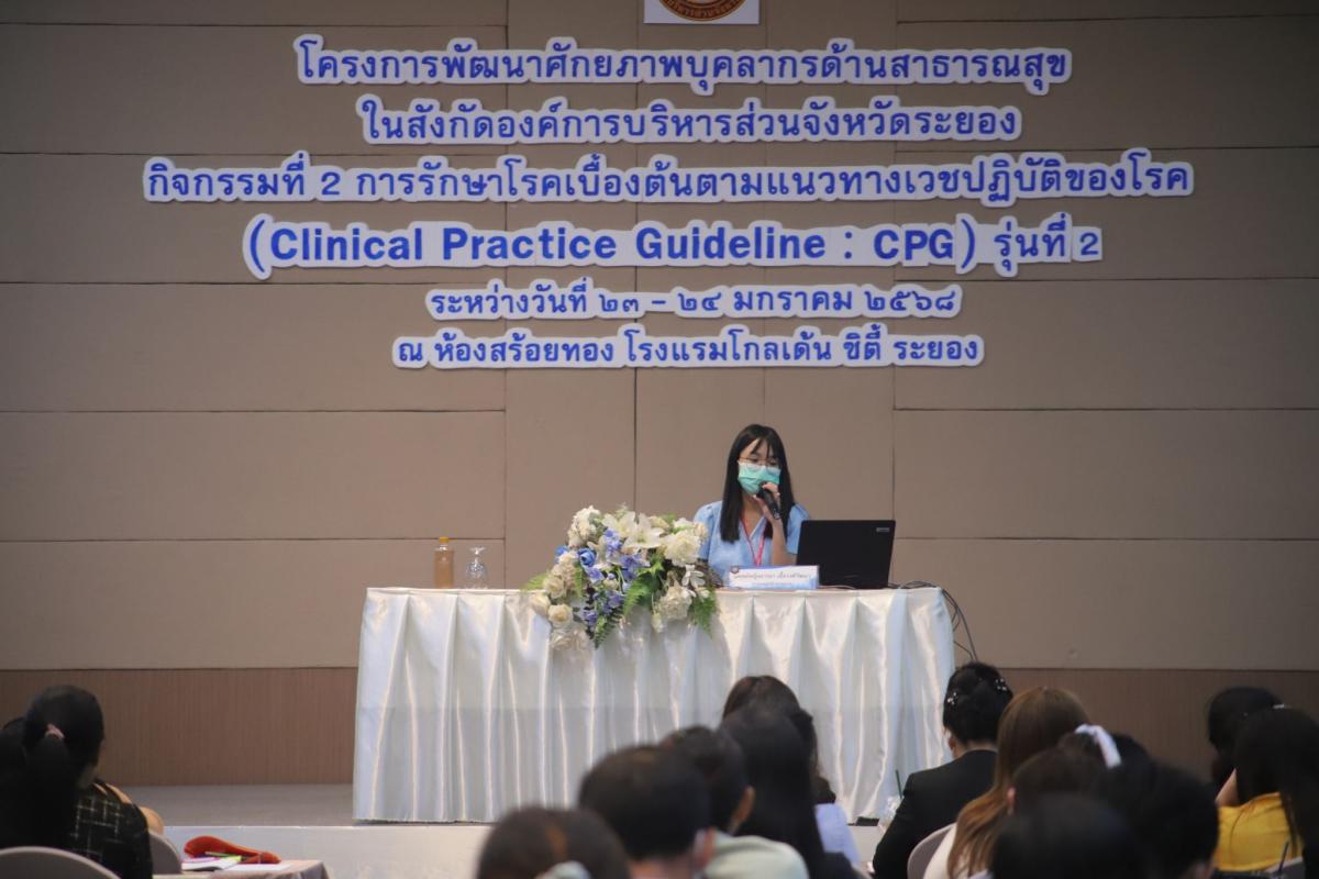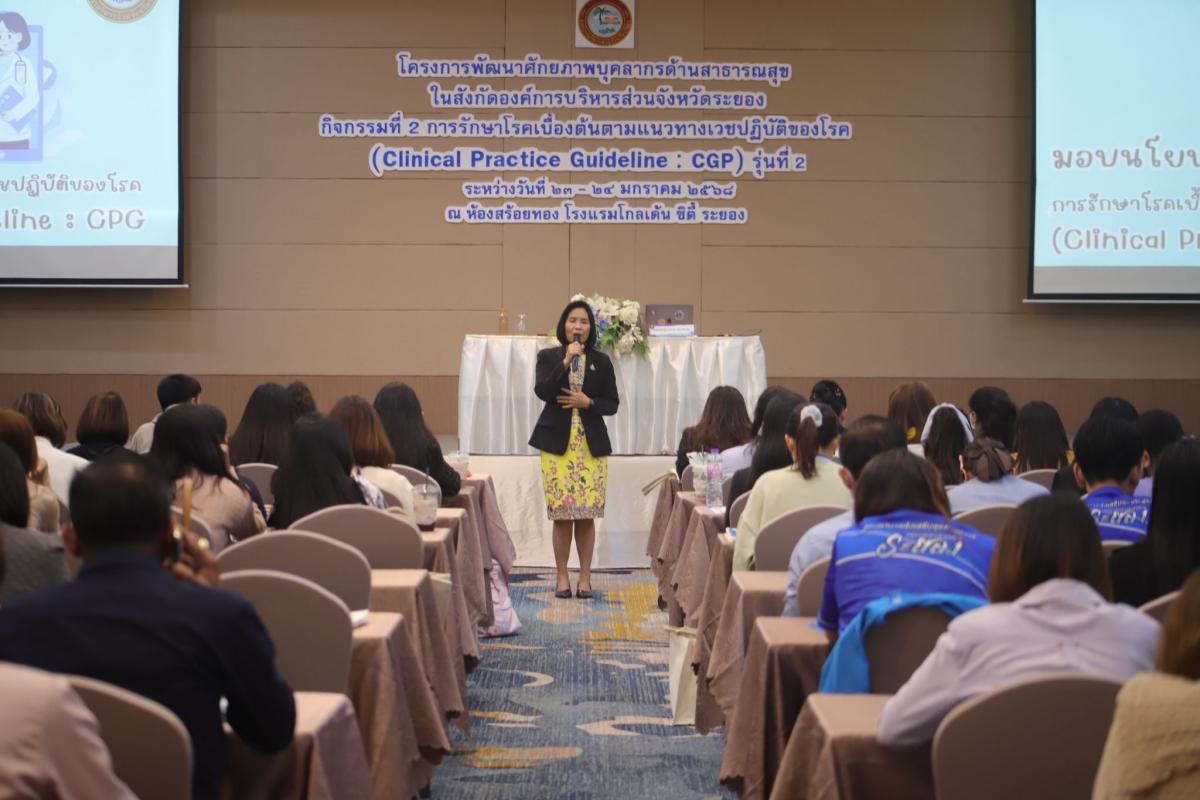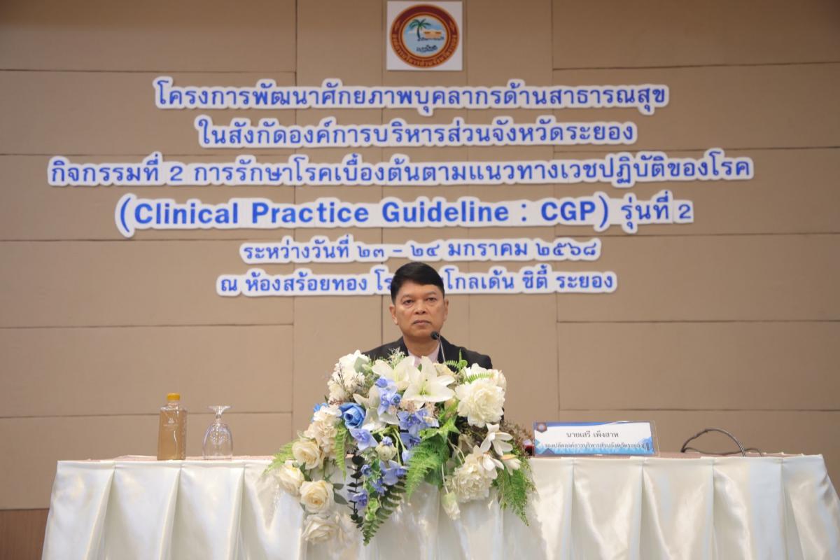 วันที่ 23 มกราคม 2568 เวลา 09.00 น. นายเสรี เพ็งสาท รองปลัดองค์การบริหารส่วนจังหวัดระยอง เป็นประธานเปิด " โครงการพัฒนาศักยภาพบุคลากรด้านสาธารณสุข ในสังกัดองค์การบริหารส่วนจังหวัดระยอง กิจกรรมพัฒนาศักยภาพบุคลากรด้านการรักษาโรคเบื้องต้นตามแนวทางเวชปฏิบัติของโรค" รุ่นที่ 2 (Clincal Practice Guideline : CPG) ณ โรงแรมโกลเด้น ซิตี้ ระยอง โดยมีนางเสาวณีย์ อุ่ยตระกูล ผู้เชี่ยวชาญด้านสาธารณสุข และเจ้าหน้าที่ด้านสาธารณสุข เข้าร่วมโครงการ จำนวน 200 คน