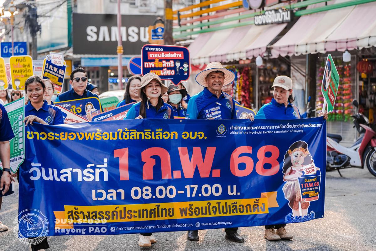 วันที่ 23 มกราคม 2568 เวลา 16.00 น. เจ้าหน้าที่จากองค์การบริหารส่วนจังหวัดระยอง ลงพื้นที่รณรงค์การเลือกตั้งสมาชิกสภาองค์การบริหารส่วนจังหวัดระยอง และนายกองค์การบริหารส่วนจังหวัดระยอง ในพื้นที่ตลาดอำเภอนิคมพัฒนา และพื้นที่บริเวณโดยรอบ เพื่อเป็นการประชาสัมพันธ์เชิญชวน และรณรงค์ให้ประชาชนออกไปใช้สิทธิเลือกตั้งในแต่ละเขตตามที่อยู่ทะเบียนบ้าน ในวันเสาร์ที่ 1 กุมภาพันธ์ 2568 เวลา 08.00 – 17.00 น.