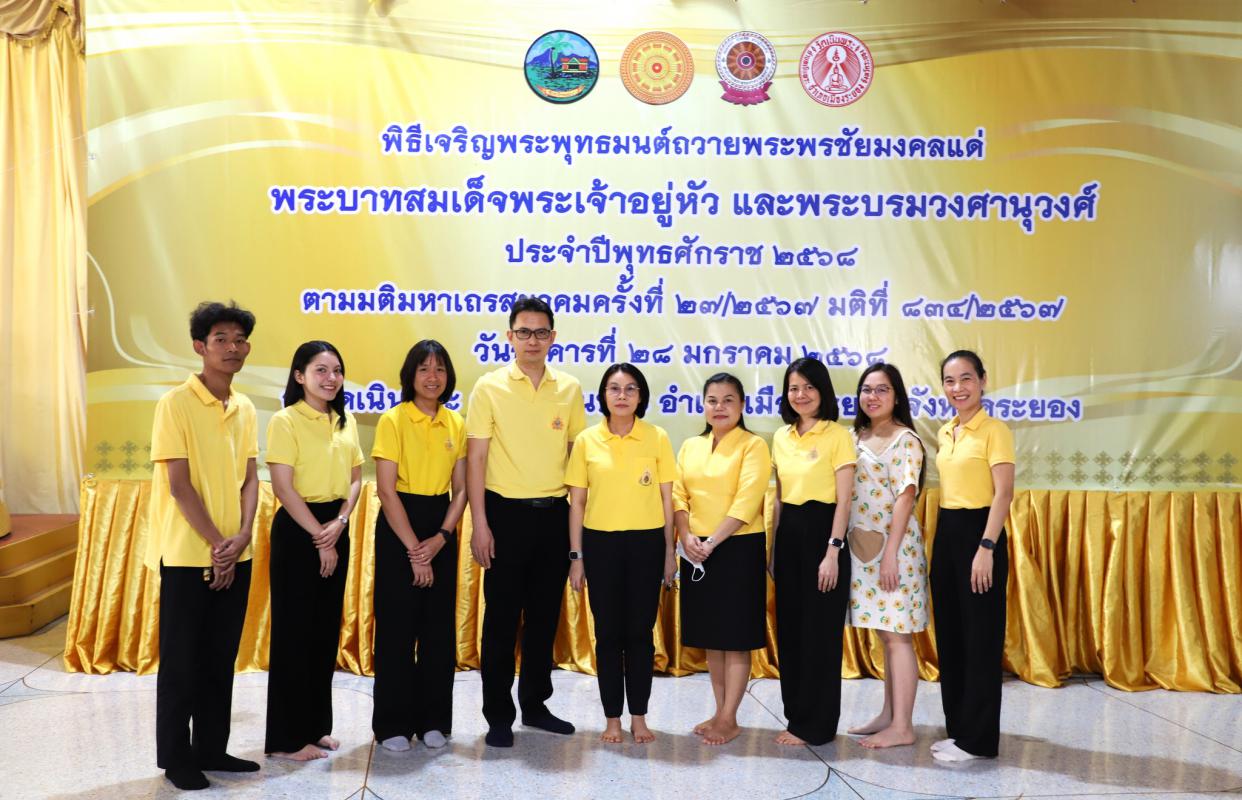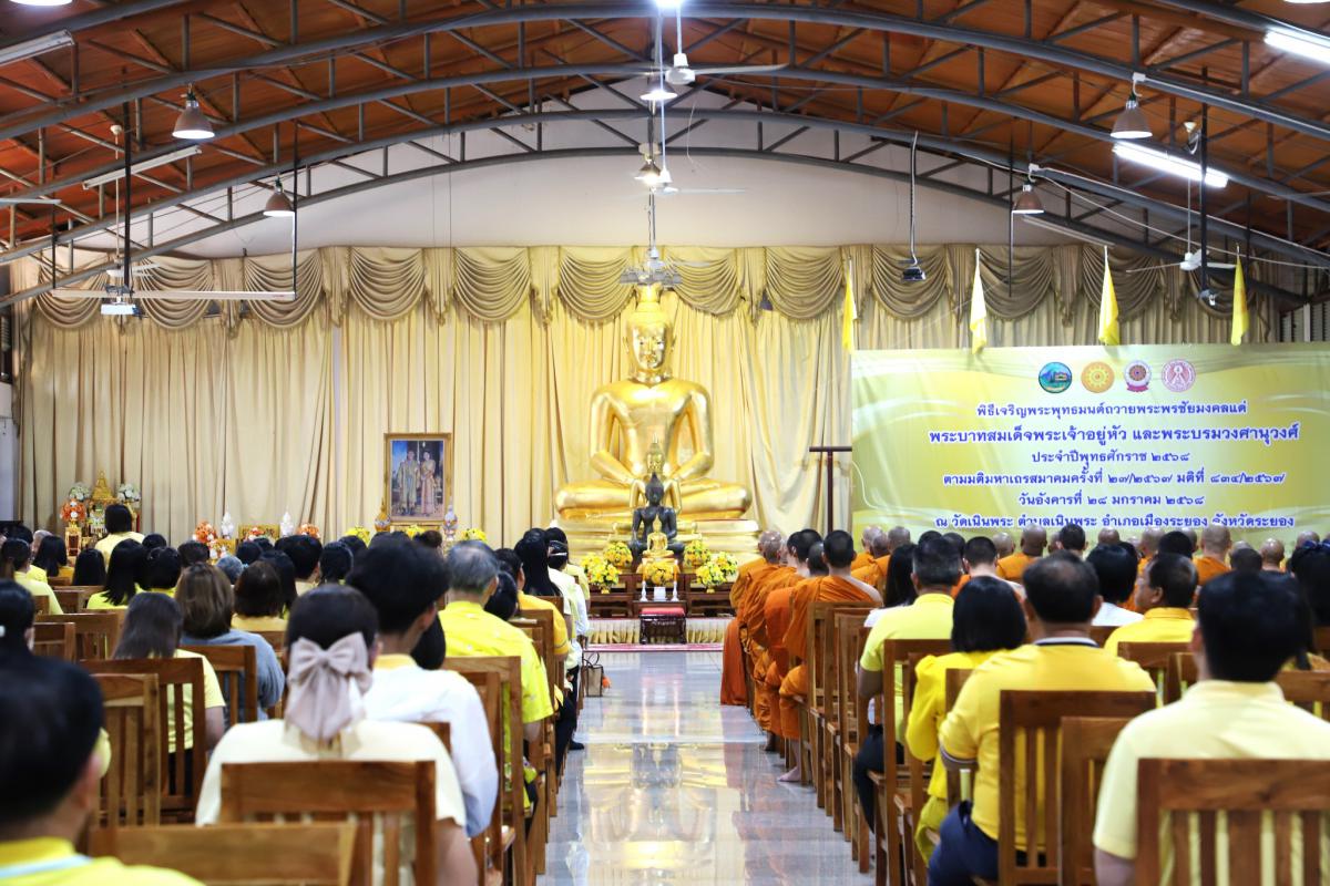 วันที่ 28 มกราคม 2568 เวลา 16.00 น. นางลัดดาวัลย์ ชาไธสง ผู้อำนวยการสำนักยุทธศาสตร์และงบประมาณ พร้อมด้วย ข้าราชการสังกัดอบจ.ระยอง เข้าร่วมพิธีเจริญพระพุทธมนต์ ถวายพระพรชัยมงคลแด่พระบาทสมเด็จพระเจ้าอยู่หัว และพระบรมวงศานุวงศ์ ประจำปีพุทธศักราช 2568 โดยมี นายกัฬชัย เทพวรชัย รองผู้ว่าราชการจังหวัดระยอง เป็นประธานในพิธีจุดธูป เทียน บูชาพระรัตนตรัย เปิดกรวยกระทงดอกไม้เบื้องหน้าพระรูป พระบาทสมเด็จพระเจ้าอยู่หัว และพระบรมวงศานุวงศ์ พร้อมทั้งร่วมพิธีเจริญจิตภาวนาถวายพระพรชัยมงคลฯ เพื่อเป็นการส่งเสริมให้พสกนิกรทุกหมู่เหล่าร่วมกันทำความดี ถวายพระราชกุศล และเป็นการแสดงถึงความจงรักภักดีต่อสถาบันพระมหากษัตริย์ ณ ศาลาการเปรียญวัดเนินพระ ตำบลเนินพระ อำเภอเมืองระยอง จังหวัดระยอง