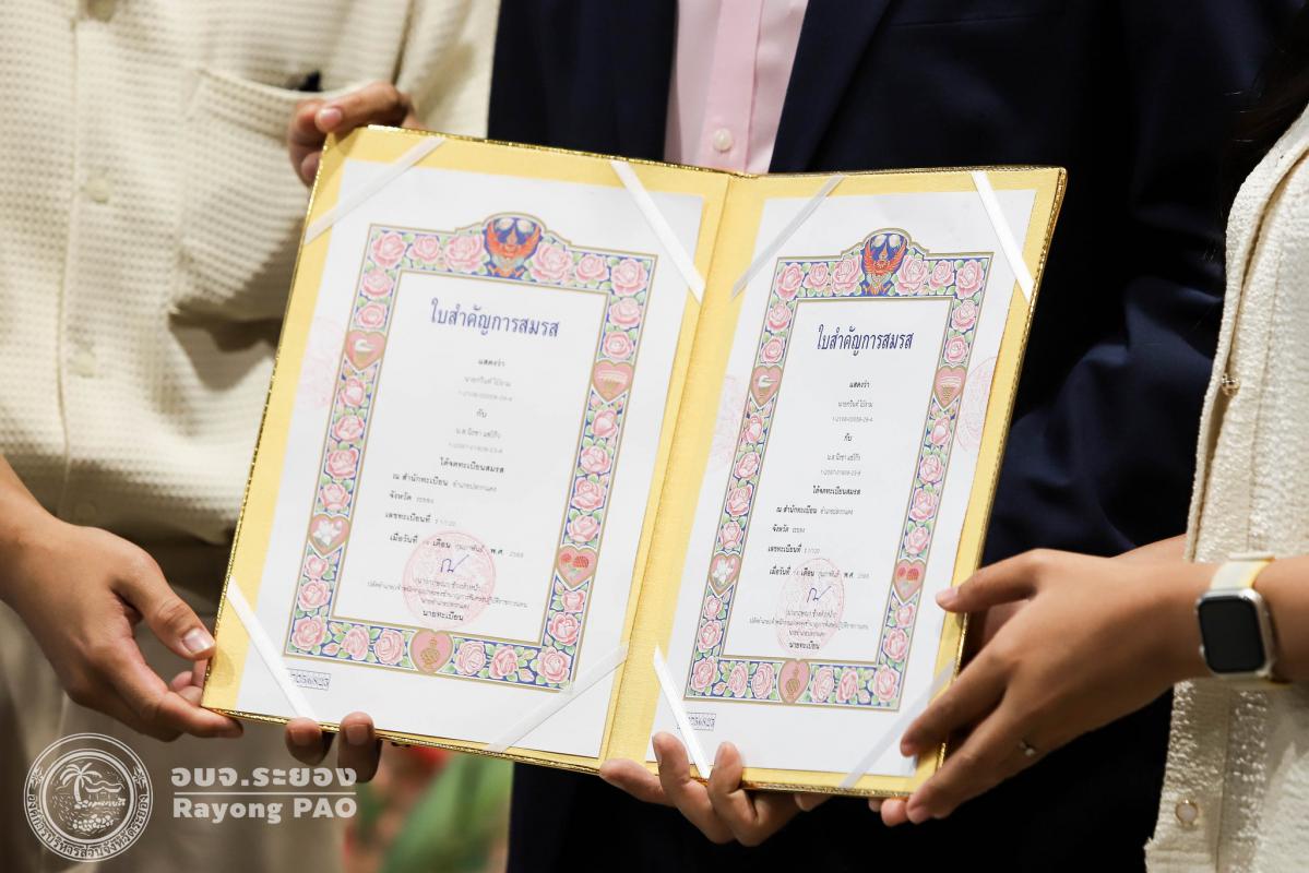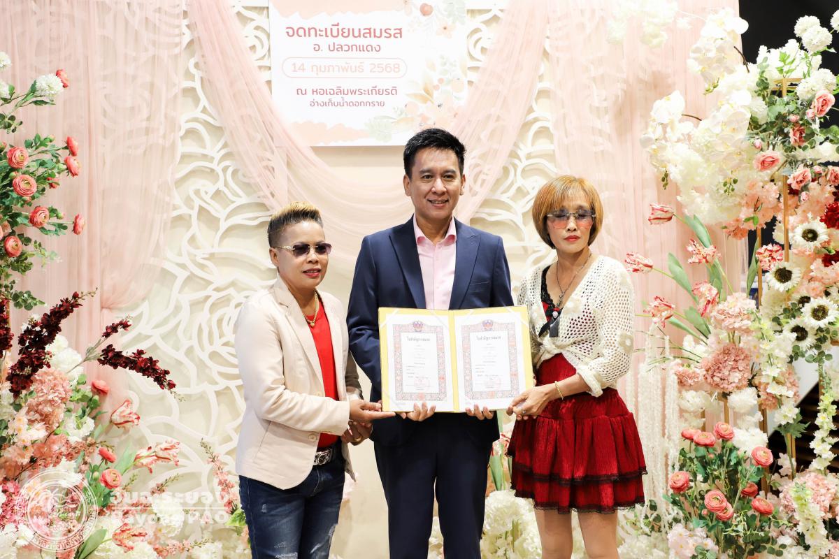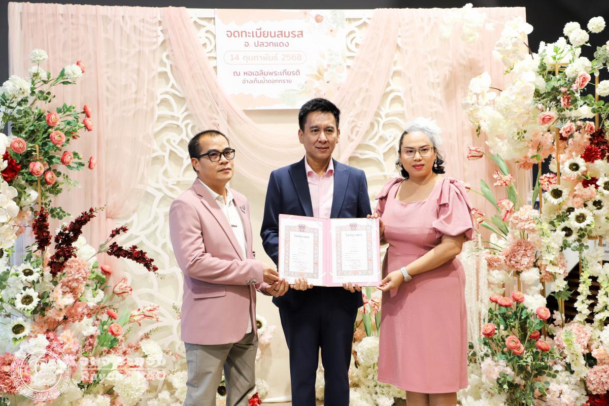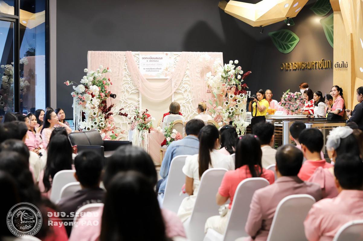 วันที่ 14 กุมภาพันธ์ 2568 นางสาวสุธัญญา สุขรมย์ รองปลัดองค์การบริหารส่วนจังหวัดระยอง พร้อมด้วย คณะผู้บริหาร หัวหน้าส่วนราชการ และผู้ที่เกี่ยวข้องเข้าร่วมโครงการจดทะเบียนสมรสเนื่องในวันแห่งความรัก (Valentine’s Day 2025) โดยมีนายสกนธ์ กรกฎ นายอำเภอปลวกแดง เป็นประธานเปิดงานให้กับคู่บ่าว-สาว ที่ได้ลงทะเบียนไว้ ซึ่งมีนางกฤษณา ช้างหัวหน้า ปลัดอำเภอหัวหน้ากลุ่มงานทะเบียนและบัตรอำเภอปลวกแดงเป็นผู้กล่าวรายงาน ภายในงานมีกิจกรรมการจดทะเบียนสมรส, การถ่ายภาพพร้อมมอบของที่ระลึก และมอบของรางวัลพิเศษแก่ผู้ที่มาจดทะเบียนเพื่อความเป็นสิริมงคล ซึ่งภายในงานมีคู่มาจดทะเบียนสมรส 14 คู่ ณ หอเฉลิมพระเกียรติ อ่างเก็บน้ำดอกกราย อำเภอปลวกแดง จังหวัดระยอง