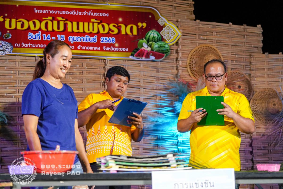วันที่ 14 กุมภาพันธ์ 2568 เวลา 18.00 น. นางสาวสุธัญญา สุขรมย์ รองปลัดองค์การบริหารส่วนจังหวัดระยอง เข้าร่วมพิธีเปิดโครงการงานของดีประจำถิ่นระยอง “ของดีบ้านพังราด” โดยมี นายกันตภณ สุขสงค์ นายอำเภอแกลง เป็นประธานเปิดโครงการฯ พร้อมด้วย หัวหน้าส่วนราชการ และผู้ที่เกี่ยวข้องเข้าร่วมพิธีเปิดโครงการฯ โดยพร้อมเพรียงกัน ซึ่งโครงการดังกล่าวจัดขึ้นเพื่อเป็นการประชาสัมพันธ์ผลผลิตทางการเกษตร และของดีประจำถิ่นของจังหวัดระยอง และเพื่อเป็นการส่งเสริมให้ประชาชนในท้องถิ่นมีรายได้เพิ่มมากขึ้น จากการจำหน่ายสินค้าภายในงาน รวมไปถึงยังเป็นการประชาสัมพันธ์และส่งเสริมการท่องเที่ยวเชิงเกษตรของอำเภอแกลง จังหวัดระยอง ให้เป็นที่รู้จักมากยิ่งขึ้น ภายในงานพบกับการจำหน่ายสินค้าของดีบ้านพังราด กิจกรรมการแข่งขันกินแตงโม กิจกรรมการแข่งขันหยอดแป้นปูน กิจกรรมการแข่งขันปอกมะพร้าว การแสดงพื้นบ้าน และกิจกรรมอื่นๆ อีกมากมาย โดยงานจัดขึ้นระหว่างวันที่ 14-15 กุมภาพันธ์ 2568 ณ วัดท่ามะกอก ตำบลพังราด อำเภอแกลง จังหวัดระยอง