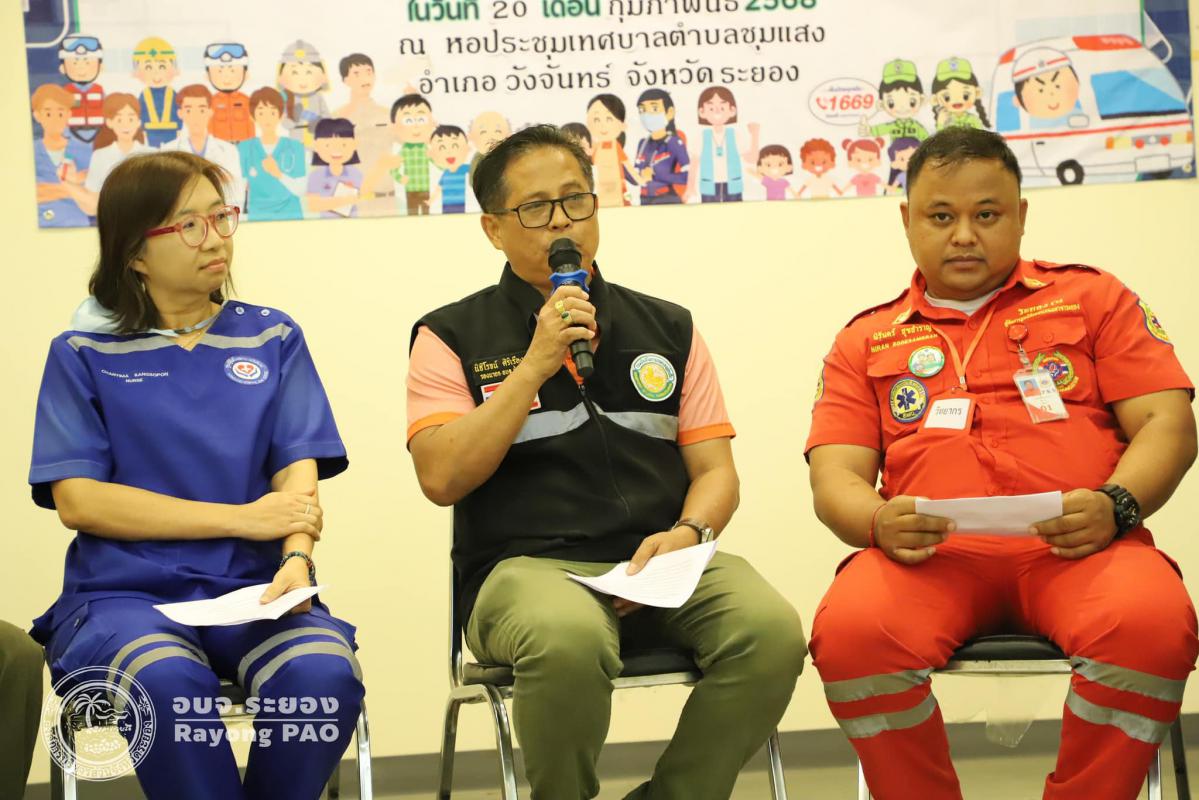 วันที่ 20 กุมภาพันธ์ 2568 เวลา 08.00 น. กองสาธารณสุข จัดโครงการพัฒนาศักยภาพเครือข่ายหน่วยปฏิบัติงานด้านการแพทย์ฉุกเฉินจังหวัดระยอง ศูนย์รับแจ้งเหตุและจ่ายงานการแพทย์ฉุกเฉิน (1669) องค์การบริหารส่วนจังหวัดระยอง ซึ่งจะมีการอบรมภาคประชาชนของพื้นที่ 8 อำเภอ ระหว่างเดือนกุมภาพันธ์ - มีนาคม 2568 โดยจะเริ่มที่อำเภอวังจันทร์เป็นอำเภอแรก ซึ่งพิธีเปิดโครงการฯได้รับเกียรติจากปลัดอาวุโสเอกชัย แสงสี เป็นประธานในพิธีเปิด และนายสุริยะ ศิริวัฒน์ ผู้อำนวยการกองสาธารณสุขเป็นผู้กล่าววัตถุประสงค์ของการจัดโครงการฯในครั้งนี้ โดยกิจกรรมภายในโครงการฯได้มีการบรรยายจากนพ.ภคพล เอี่ยมไพบูลย์พันธ์ โรงพยาบาลระยอง ในหัวข้อ ”การประเมินและคัดแยกผู้ป่วยฉุกเฉินกับภาวะฉุกเฉินที่พบบ่อยและการดูแลเบื้องต้น“ การเสวนาในหัวข้อ “เสียงสะท้อนการแพทย์ฉุกเฉินในปัจจุบันสู่อนาคตที่มุ่งหมาย” และกิจกรรมแบ่งกลุ่ม ณ เทศบาลตำบลชุมแสง
