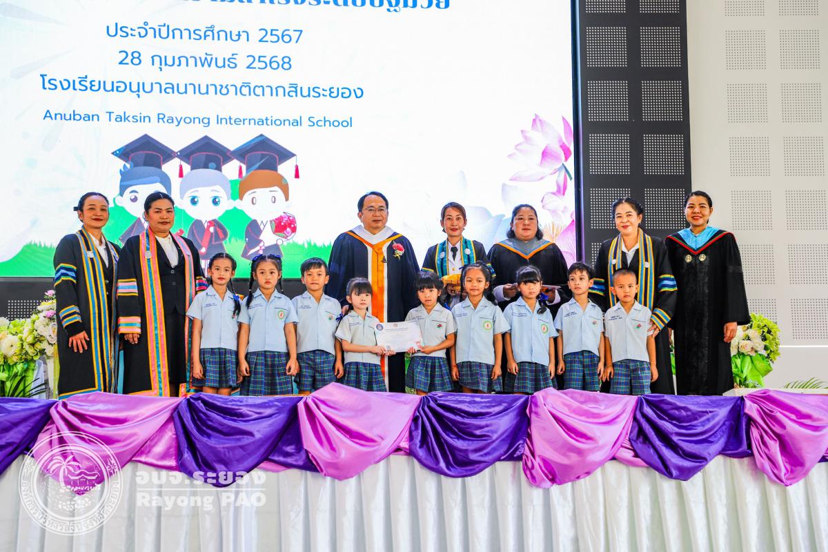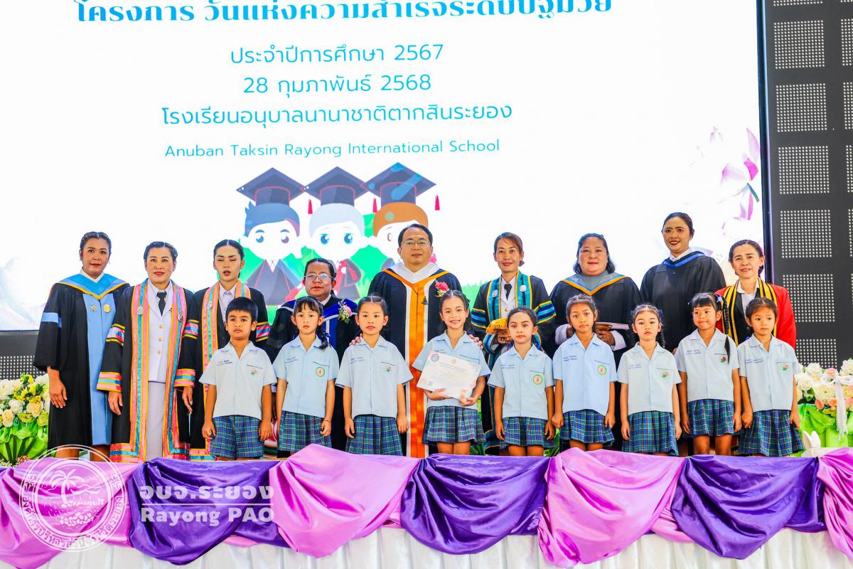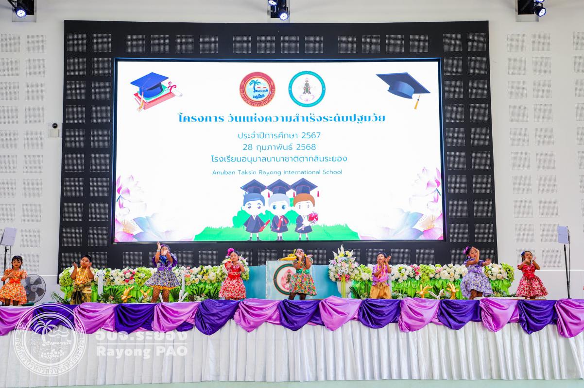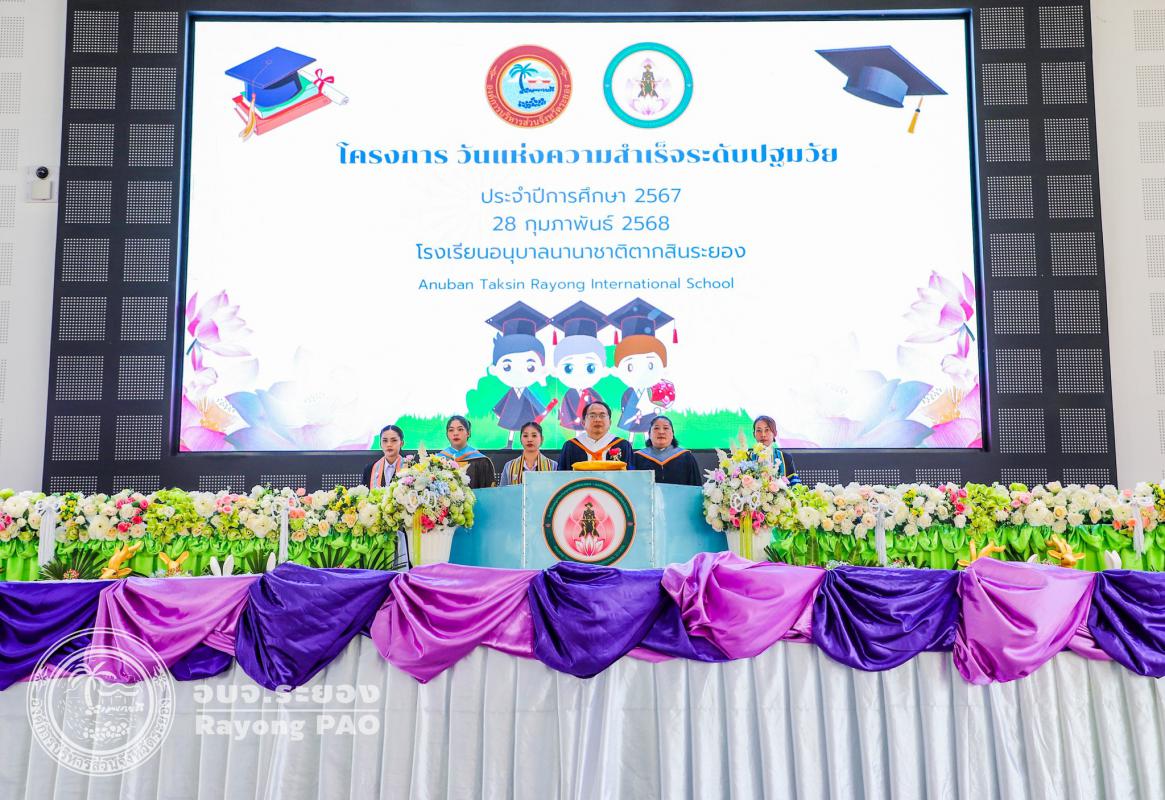 วันที่ 28 กุมภาพันธ์ 2568 เวลา 09.00 น. นายสุรินทร์ แสงทอง ปลัดองค์การบริหารส่วนจังหวัดระยอง ให้เกียรติเป็นประธานเปิดโครงการวันแห่งความสำเร็จระดับปฐมวัย ประจำปีการศึกษา 2567 และกล่าวให้โอวาท พร้อมด้วยนางสาวสดใส ดลยา รักษาการผู้อำนวยการกองการศึกษาศาสนาและวัฒนธรรม, คณะครู ผู้ปกครองและผู้ที่มีส่วนเกี่ยวข้องเข้าร่วมงานฯ โดยมีนายสนิท โคตะระ ผู้อำนวยการโรงเรียนอนุบาลนานาชาติตากสินระยอง เป็นผู้กล่าวรายงานวัตถุประสงค์ของโครงการดังกล่าว ซึ่งภายในงานมีการมอบประกาศนียบัตรสำเร็จการศึกษาให้กับนักเรียนในระดับชั้นอนุบาล 3 จำนวน 284 คน เป็นการแสดงความยินดีกับนักเรียนที่สำเร็จการศึกษาในปีการศึกษา 2567 ณ อาคารอเนกประสงค์ โรงเรียนอนุบาลนานาชาติตากสินระยอง
