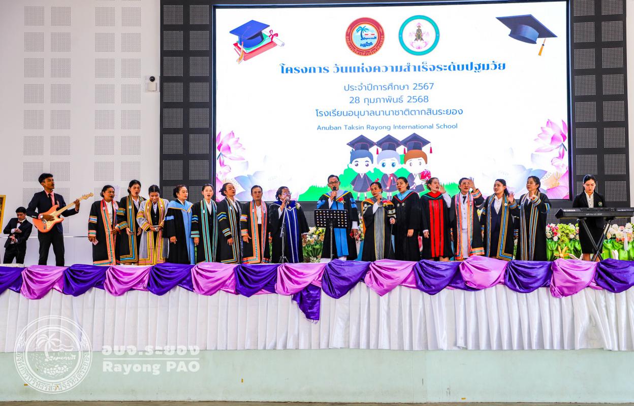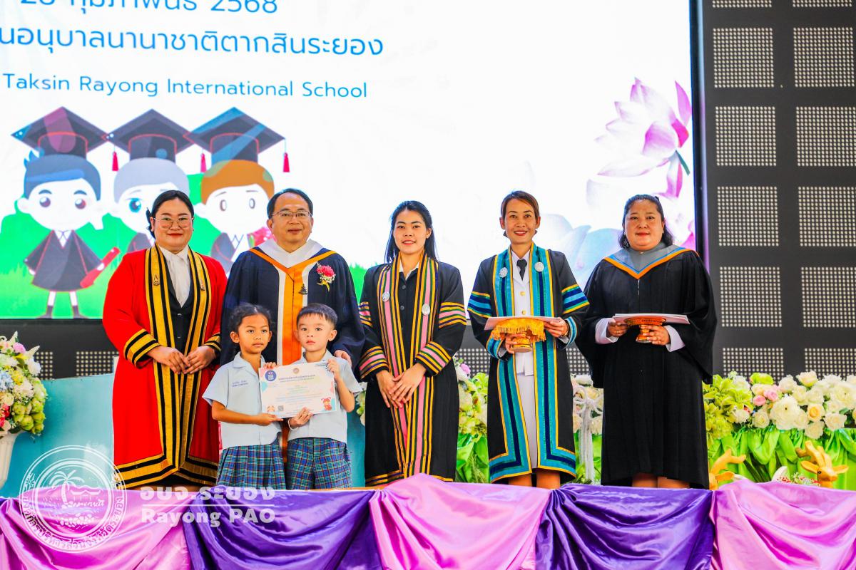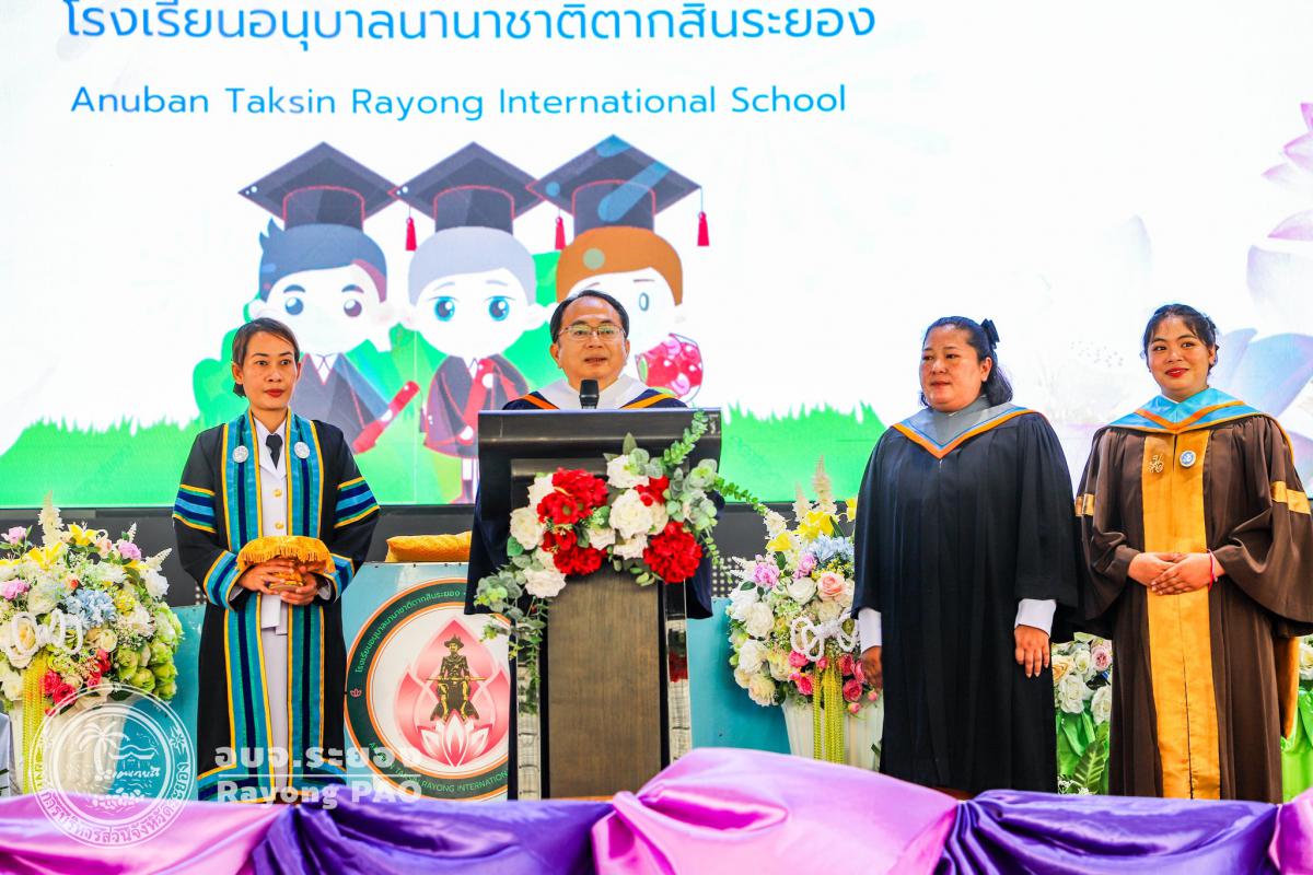 วันที่ 28 กุมภาพันธ์ 2568 เวลา 09.00 น. นายสุรินทร์ แสงทอง ปลัดองค์การบริหารส่วนจังหวัดระยอง ให้เกียรติเป็นประธานเปิดโครงการวันแห่งความสำเร็จระดับปฐมวัย ประจำปีการศึกษา 2567 และกล่าวให้โอวาท พร้อมด้วยนางสาวสดใส ดลยา รักษาการผู้อำนวยการกองการศึกษาศาสนาและวัฒนธรรม, คณะครู ผู้ปกครองและผู้ที่มีส่วนเกี่ยวข้องเข้าร่วมงานฯ โดยมีนายสนิท โคตะระ ผู้อำนวยการโรงเรียนอนุบาลนานาชาติตากสินระยอง เป็นผู้กล่าวรายงานวัตถุประสงค์ของโครงการดังกล่าว ซึ่งภายในงานมีการมอบประกาศนียบัตรสำเร็จการศึกษาให้กับนักเรียนในระดับชั้นอนุบาล 3 จำนวน 284 คน เป็นการแสดงความยินดีกับนักเรียนที่สำเร็จการศึกษาในปีการศึกษา 2567 ณ อาคารอเนกประสงค์ โรงเรียนอนุบาลนานาชาติตากสินระยอง