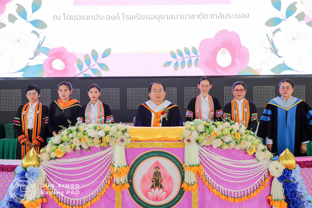 วันที่ 7 มีนาคม 2568 เวลา 09.00 น. นายสุรินทร์ แสงทอง ปลัดองค์การบริหารส่วนจังหวัดระยอง เป็นประธานในพิธีปัจฉิมนิเทศและมอบประกาศนียบัตรให้แก่นักเรียนชั้นประถมศึกษาปีที่ 6 ของโรงเรียนอนุบาลนานาชาติตากสินระยอง พร้อมด้วยนายสนิท โคตะระ ผู้อำนวยการโรงเรียนอนุบาลนานาชาติตากสินระยอง คณะครู ผู้ปกครองและผู้ที่มีส่วนเกี่ยวข้อง ซึ่งภายในงานมีการมอบประกาศนียบัตรสำเร็จการศึกษาให้กับนักเรียนชั้นประถมศึกษาปีที่ 6 เป็นการแสดงความยินดีกับนักเรียนที่สำเร็จการศึกษาในปีการศึกษา 2567 ณ อาคารอเนกประสงค์ โรงเรียนอนุบาลนานาชาติตากสินระยอง