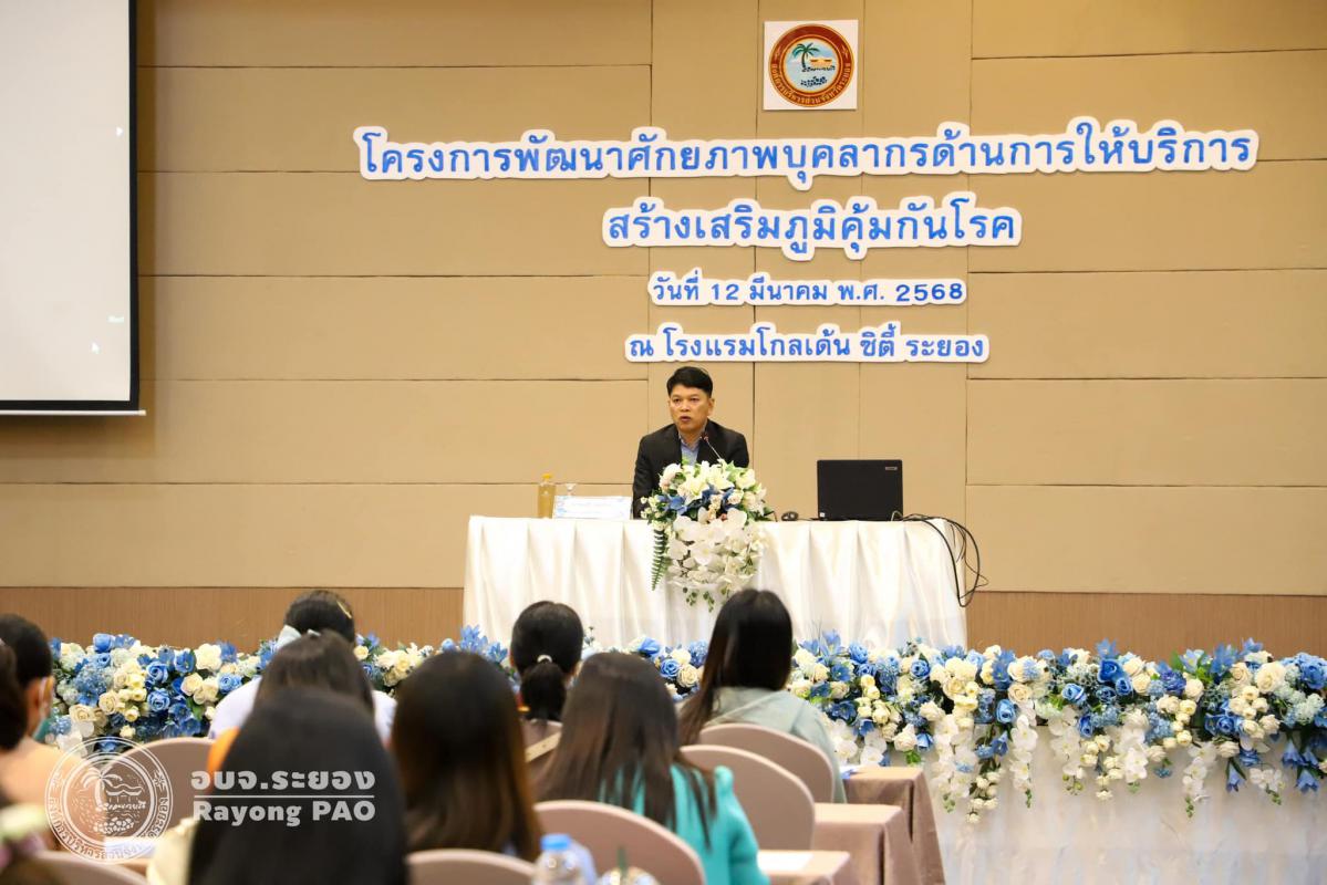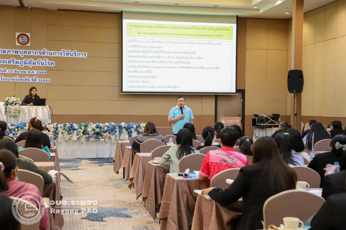 วันที่ 12 มีนาคม 2568 เวลา 09.00 น. กองสาธารณสุข จัดโครงการพัฒนาศักยภาพบุคลากรด้านการให้บริการสร้างเสริมภูมิคุ้มกันโรค ซึ่งเป็นการจัดอบรมให้กับบุคลากรสาธารณสุข ในสังกัดองค์การบริหารส่วนจังหวัดระยอง และภาคีเครือข่ายที่เกี่ยวข้อง เพื่อพัฒนาความรู้ ความเข้าใจ และฟื้นฟูทักษะในงานสร้างเสริมภูมิคุ้มกันโรค และสามารถบริหารจัดการให้บริการงานสร้างเสริมภูมิคุ้มกันโรคแก่ประชาชนได้อย่างมีประสิทธิภาพตามมาตรฐาน โดยมีนายเสรี เพ็งสาท รองปลัดองค์การบริหารส่วนจังหวัดระยอง เป็นประธานในพิธีเปิด พร้อมด้วย นายสุริยะ ศิริวัฒน์ ผู้อำนวยการกองสาธารณสุข นางเสาวณีย์ อุ่ยตระกูล ที่ปรึกษาด้านสาธารณสุข และเจ้าหน้าที่ที่เกี่ยวข้องเข้าร่วมพิธีเปิดโดยพร้อมเพรียงกัน ณ โรงแรมโกลเด้นซิตี้ ระยอง