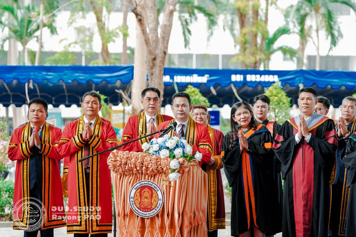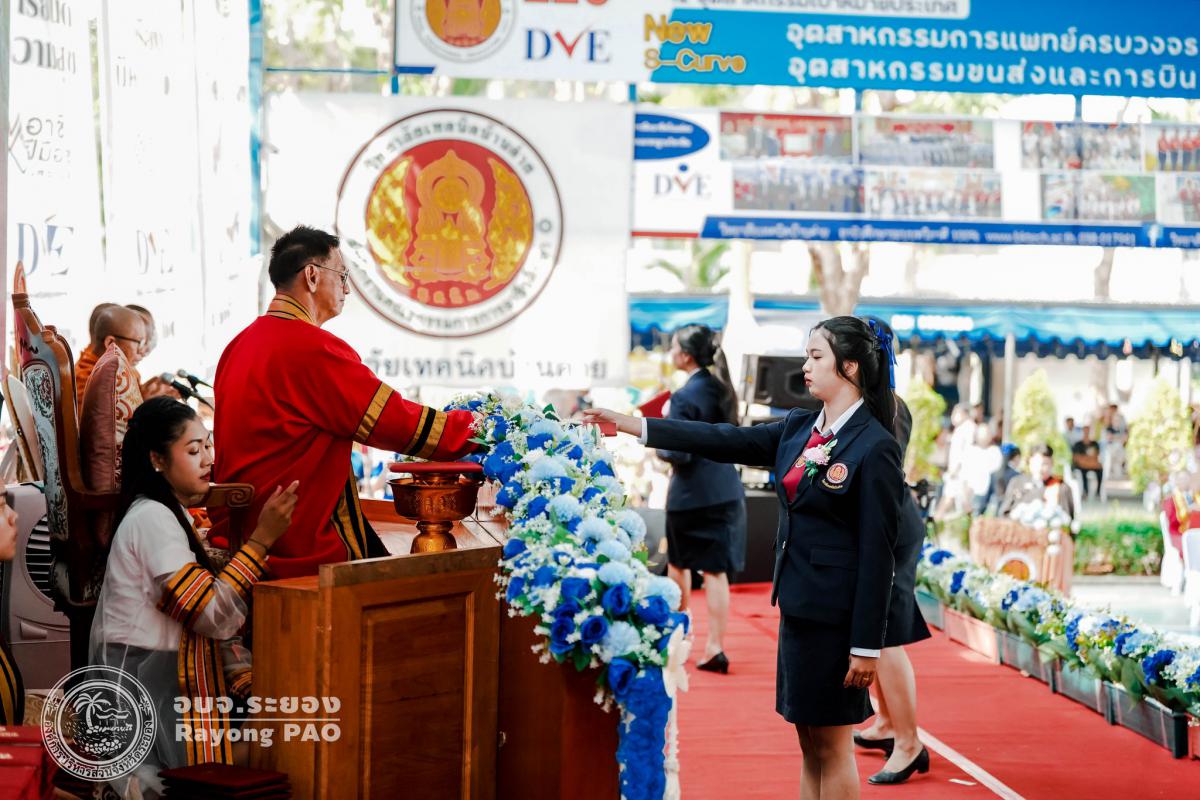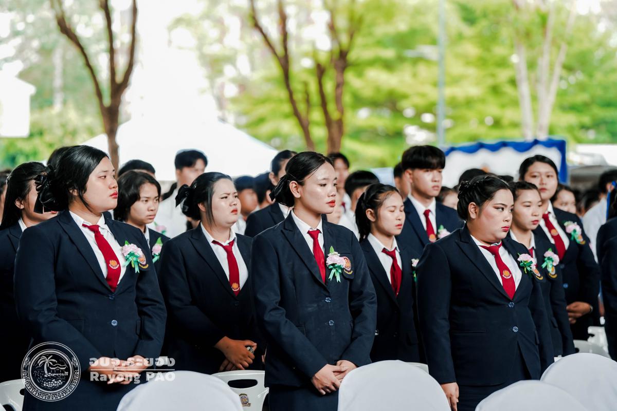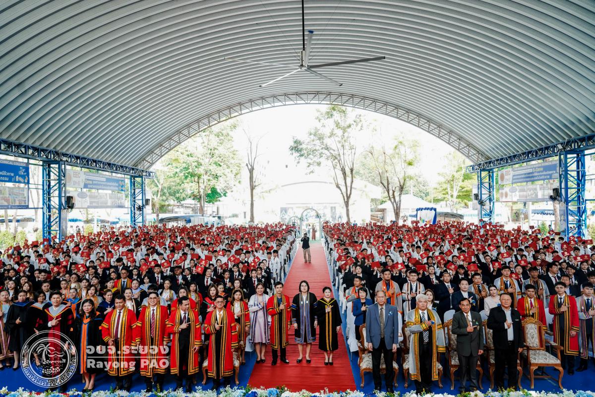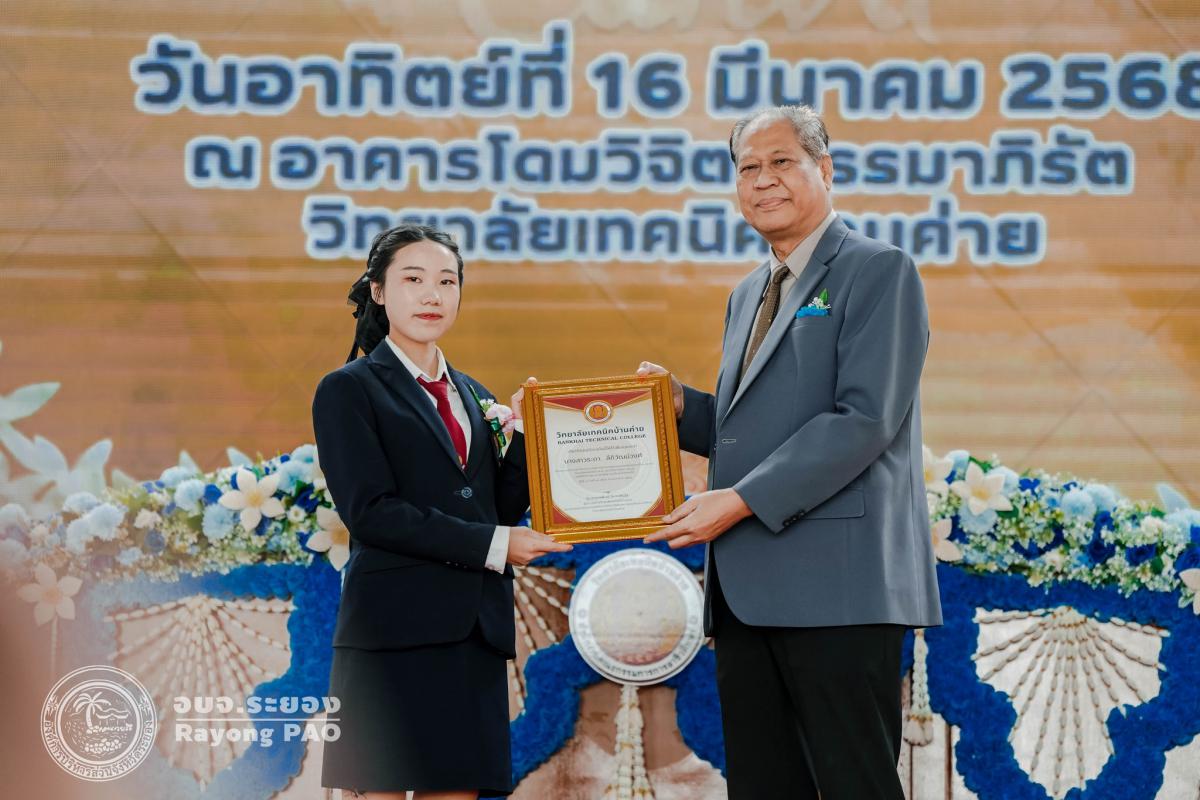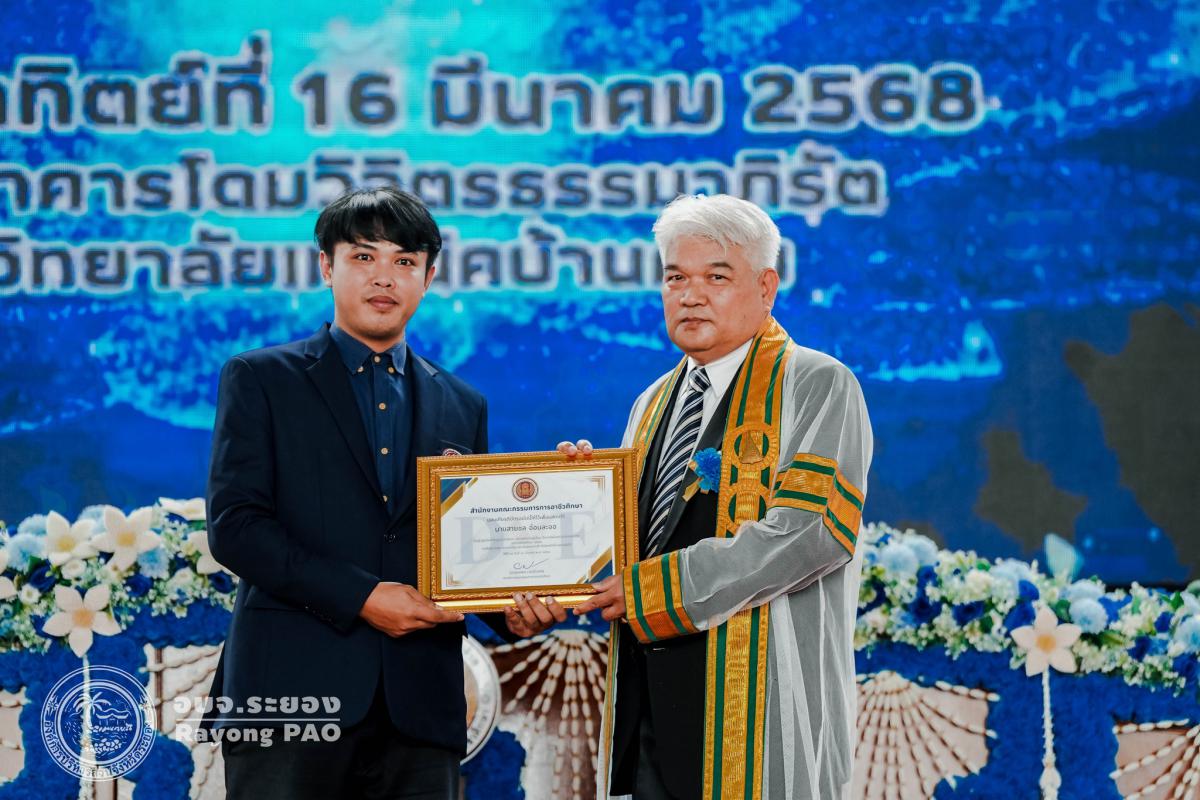 วันที่ 16 มีนาคม 2568 เวลา 08.00 น. นายปิยะ ปิตุเตชะ นายกองค์การบริหารส่วนจังหวัดระยอง เป็นประธานในพิธีมอบประกาศนียบัตรให้แก่ผู้สำเร็จการศึกษา ประจำปี 2568 ระดับประกาศนียบัตรวิชาชีพ (ปวช.) และระดับประกาศนียบัตรวิชาชีพชั้นสูง (ปวส.) โดยมี นายยุทธพันธ์ โคตรพันธ์ ผู้อำนวยการวิทยาลัยเทคนิคบ้านค่าย เป็นผู้กล่าวรายงาน พร้อมด้วย คณะครู นักศึกษา และผู้ที่เกี่ยวข้องเข้าร่วมพิธีมอบประกาศนียบัตรฯ โดยพร้อมเพรียงกัน ซึ่งภายในงานได้มีการมอบประกาศนียบัตรให้แก่สำเร็จการศึกษาในระดับประกาศนียบัตรวิชาชีพ (ปวช.) และระดับประกาศนียบัตรวิชาชีพชั้นสูง (ปวส.) จำนวน 879 คน เพื่อเป็นการแสดงความยินดีแก่ผู้ที่สำเร็จการศึกษา ประจำปี 2568 ณ อาคารโดมวิจิตรธรรมาภิรัต วิทยาลัยเทคนิคบ้านค่าย