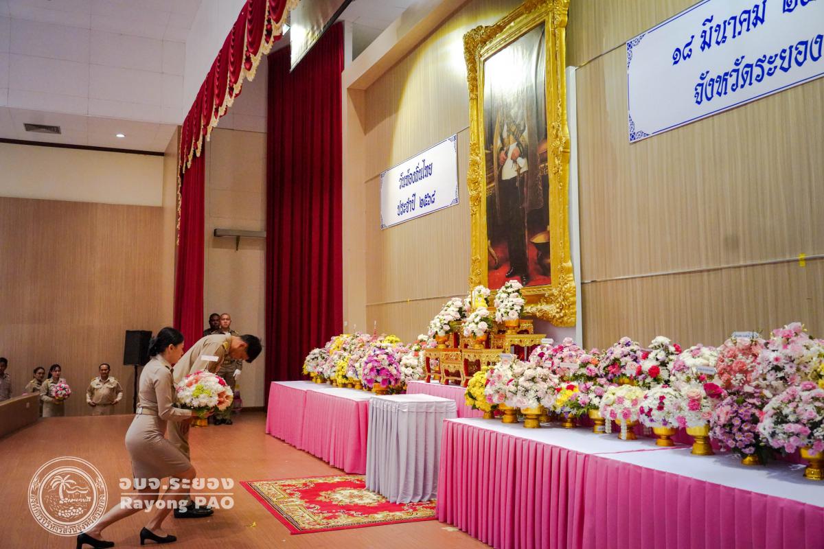 วันที่ 18 มีนาคม 2568 เวลา 07.30 น. ณ หอประชุมศูนย์ราชการจังหวัดระยอง นายเสรี เพ็งสาท รองปลัดองค์การบริหารส่วนจังหวัดระยอง พร้อมด้วย ข้าราชการ พนักงาน ลูกจ้างสังกัดอบจ.ระยอง เข้าร่วมพิธีถวายราชสักการะฯ พระบาทสมเด็จพระจุลจอมเกล้าเจ้าอยู่หัว รัชกาลที่ 5 เนื่องในโอกาส “วันท้องถิ่นไทย ประจำปี 2568” โดยมี นายกัฬชัย เทพวรชัย รองผู้ว่าราชการจังหวัดระยอง เป็นประธานในพิธีนำผู้เข้าร่วมพิธีวางพานพุ่มดอกไม้สดถวายราชสักการะ และกล่าวถวายราชสดุดีน้อมรำลึกถึงพระมหากรุณาธิคุณเบื้องหน้าพระบรมสาทิศลักษณ์ รัชกาลที่ 5 เนื่องในโอกาส “วันท้องถิ่นไทย ประจำปี 2568” เพื่อรำลึกในพระมหากรุณาธิคุณของพระบาทสมเด็จพระจุลจอมเกล้าเจ้าอยู่หัว ทรงมีพระบรมราชโองการให้ยกฐานะตำบลท่าฉลอมขึ้นเป็น “สุขาภิบาลท่าฉลอม” เมื่อวันที่ 18 มีนาคม 2448 ซึ่งเป็นจุดเริ่มต้นของการกระจายอำนาจการปกครองให้ประชาชนในท้องถิ่น