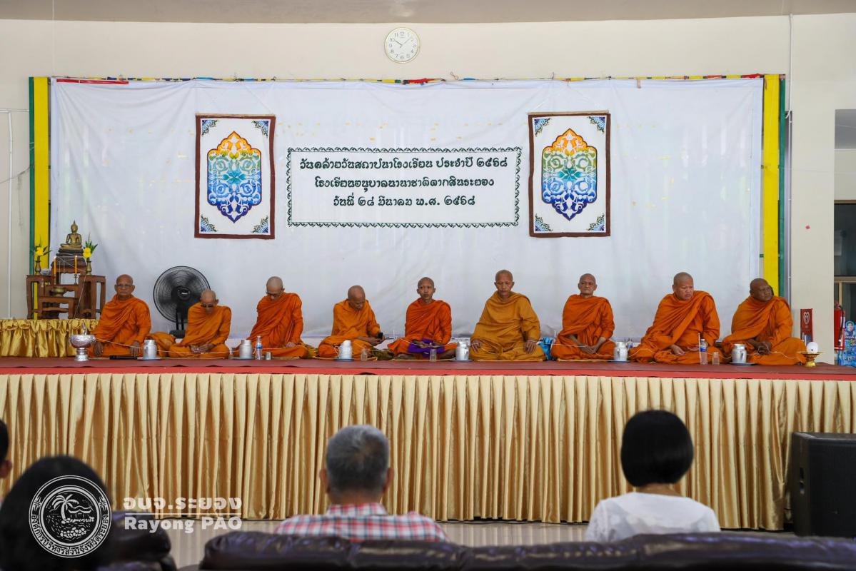 วันที่ 28 มีนาคม 2568 เวลา 09.30 น. นายสมศักดิ์ เกตุสาคร เลขานุการนายกองค์การบริหารส่วนจังหวัดระยอง พร้อมด้วยนายสนิท โคตะระ ผู้อำนวยการโรงเรียนอนุบาลนานาชาติตากสินระยอง ผู้อำนวยการโรงเรียนในสังกัดอบจ.ระยอง คณะครู และเจ้าหน้าที่ที่เกี่ยวข้อง เข้าร่วมงานทำบุญวันคล้ายวันสถาปนาโรงเรียน ประจำปี 2568 ของโรงเรียนอนุบาลนานาชาติตากสินระยอง โดยมีพิธีสงฆ์ เจริญพระพุทธมนต์ ถวายเพลแด่พระสงฆ์ จำนวน 9 รูป ณ อาคารตากสิน 4 (เวทีคนเก่ง) โรงเรียนอนุบาลนานาชาติระยอง