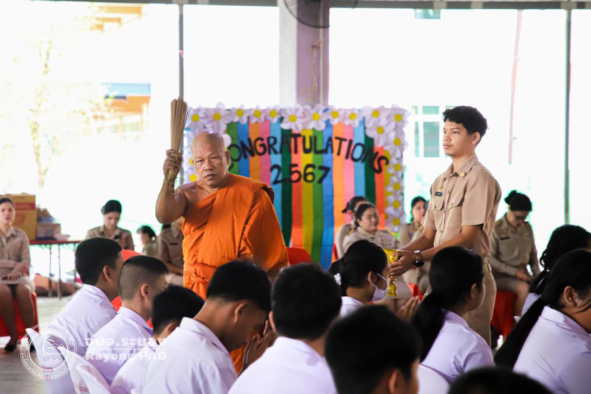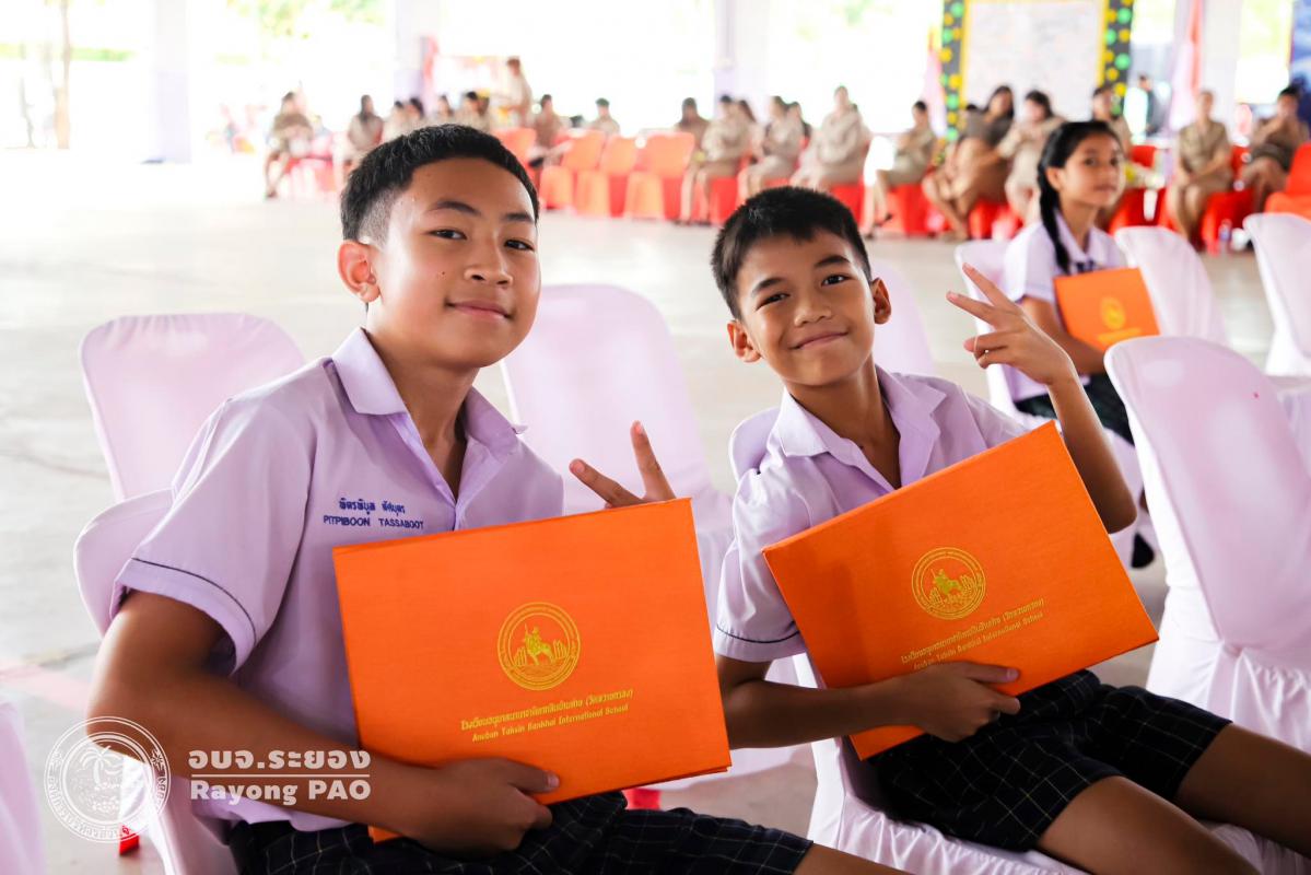 วันที่ 31 มีนาคม 2568 เวลา 09.00 น. นายประสานต์ พฤกษาชาติ รองนายกองค์การบริหารส่วนจังหวัดระยอง เป็นประธานในพิธีปัจฉิมนิเทศและมอบประกาศนียบัตร แก่นักเรียนชั้นประถมศึกษาปีที่ 6 ปีการศึกษา 2567 และกล่าวให้โอวาทแก่นักเรียนที่สำเร็จการศึกษา โดยมีนายวัชรพงษ์ สำราญรมย์ ผู้อำนวยการสถานศึกษาโรงเรียนอนุบาลนานาชาติตากสินบ้านค่าย (วัดหวายกรอง) เป็นผู้กล่าวรายงาน พร้อมด้วย คณะผู้บริหาร คณะครูและบุคคลากร เข้าร่วมแสดงความยินดีอย่างพร้อมเพรียง ณ อาคารอเนกประสงค์โรงเรียนอนุบาลนานาชาติตากสินบ้านค่าย (วัดหวายกรอง)
