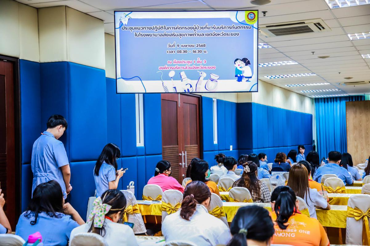 วันที่ 9 เมษายน 2568 เวลา 09.00 น. แพทย์หญิงสมบัติ ชุติมานุกูล เลขานุการนายกองค์การบริหารส่วนจังหวัดระยอง เปิดประชุม “แนวทางปฏิบัติในการคัดกรองผู้ป่วยที่เข้ารับบริการทันตกรรมในโรงพยาบาลส่งเสริมสุขภาพตำบล เขตจังหวัดระยอง” พร้อมด้วย นายเสรี เพ็งสาท รองปลัดองค์การบริหารส่วนจังหวัดระยอง, นางเสาวนีย์ อุ่ยตระกูล ที่ปรึกษาด้านสาธารณสุข, ปรึกษาคณะอนุกรรมการสุขภาพช่องปาก ภายใต้คณะกรรมการสุขภาพ ระดับพื้นที่ (กสพ.) ขององค์การบริหารส่วนจังหวัดระยอง ณ ห้องประชุม ชั้น 3 อบจ.ระยอง โดยมีทันตแพทย์หญิงเกศยา ทรัพย์สมพล ประธานคณะอนุกรรมการสุขภาพช่องปากฯ เป็นผู้กล่าวถึงวัตถุประสงค์ของการจัดประชุมดังกล่าว