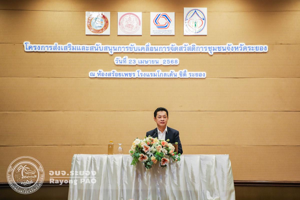 วันที่ 23 เมษายน 2568 เวลา 09.30 น. นายกิตติ เกียรติ์มนตรี รองนายกองค์การบริหารส่วนจังหวัดระยอง (1) ได้ให้เกียรติเป็นประธานในพิธีเปิดโครงการส่งเสริมและสนับสนุนการขับเคลื่อนการจัดสวัสดิการชุมชนจังหวัดระยอง พร้อมด้วยนางสาวสุมล ยางสูง ผู้ช่วยผู้อำนวยการสถาบันพัฒนาองค์กรชุมชน ,ดร.มณเฑีนณ สอดเนื่อง อนุกรรมการสวัสดิการชุมชนระดับชาติ, นายปาลิน ธํารงรัตนศิลป์ อนุกรรมการสวัสดิการชุมชนระดับชาติ, ผู้อำนวยการกอง หัวหน้าส่วนราชการ และเจ้าหน้าที่ที่เกี่ยวข้อง โดยมีนายสมบัติ มุมทอง หัวหน้าสำนักปลัด องค์การบริหารส่วนจังหวัดระยอง เป็นผู้กล่าวรายงานวัตถุประสงค์ในการจัดโครงการดังกล่าว ณ โรงแรมโกลเด้น ซิตี้ ระยอง อำเภอเมือง จังหวัดระยอง
