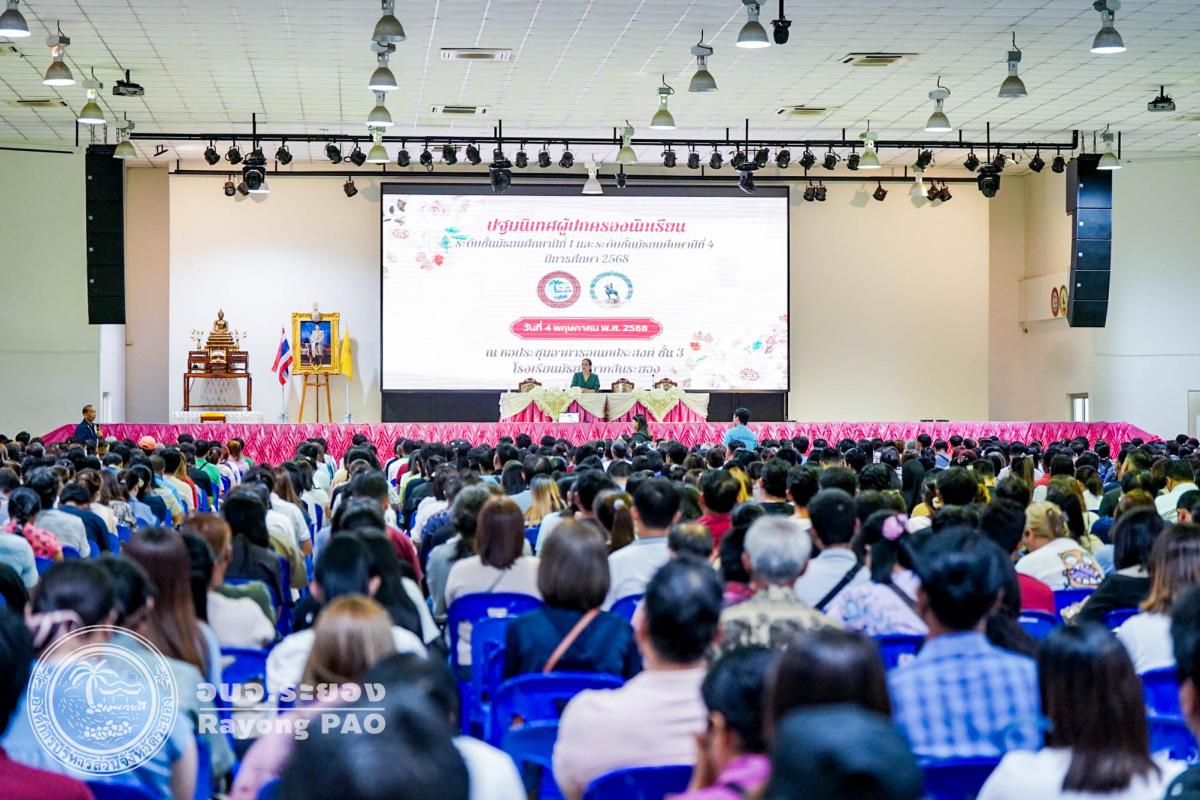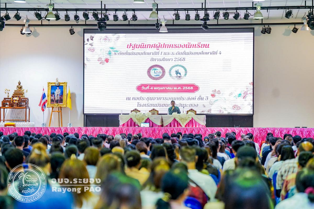 วันที่ 4 พฤษภาคม 2568 เวลา 09.00 น. นายปิยะ ปิตุเตชะ นายกองค์การบริหารส่วนจังหวัดระยอง พร้อมด้วย นายประสานต์ พฤกษาชาติ รองนายกองค์การบริหารส่วนจังหวัดระยอง (2), นางสาววัชราภรณ์ สมพงษ์ผึ้ง ผู้อำนวยการสถานศึกษา โรงเรียนมัธยมตากสินระยอง คณะครู ผู้ปกครอง และเจ้าหน้าที่ที่เกี่ยวของเข้าร่วมการปฐมนิเทศผู้ปกครองนักเรียน ระดับชั้นมัธยมศึกษาปีที่ 1 และระดับชั้นมัธยมศึกษาปีที่ 4 ประจำปีการศึกษา 2568 โดยพร้อมเพรียงกัน ณ อาคารอเนกประสงค์ชั้น 3 โรงเรียนมัธยมตากสินระยอง องค์การบริหารส่วนจังหวัดระยองมุ่งเน้นการพัฒนาคุณภาพด้านการศึกษา จึงได้ดำเนินการสนับสนุนในด้านต่างๆ ให้แก่โรงเรียนในสังกัดมาโดยตลอด ทั้งนี้จึงได้จัดกิจกรรมการปฐมนิเทศผู้ปกครองนักเรียน ระดับชั้นมัธยมศึกษาปีที่ 1 และระดับชั้นมัธยมศึกษาปีที่ 4 ประจำปีการศึกษา 2568 เพื่อเป็นการประชาสัมพันธ์โรงเรียนให้ประชาชน หรือบุคคลทั่วไปได้รับทราบถึงพัฒนาการของโรงเรียนที่มีการเปลี่ยนแปลง และพัฒนาไปในทางที่ดีขึ้น อีกทั้งยังเป็นการประชาสัมพันธ์เชิญชวนให้ผู้ปกครองที่อยู่บริเวณใกล้เคียงได้ส่งบุตรหลานเข้ามาเรียนที่โรงเรียน เพื่อให้เป็นนักเรียนที่มีระดับคุณภาพการศึกษาที่ดี และกลายเป็นกำลังสำคัญที่จะช่วยพัฒนาชุมชนต่อไป