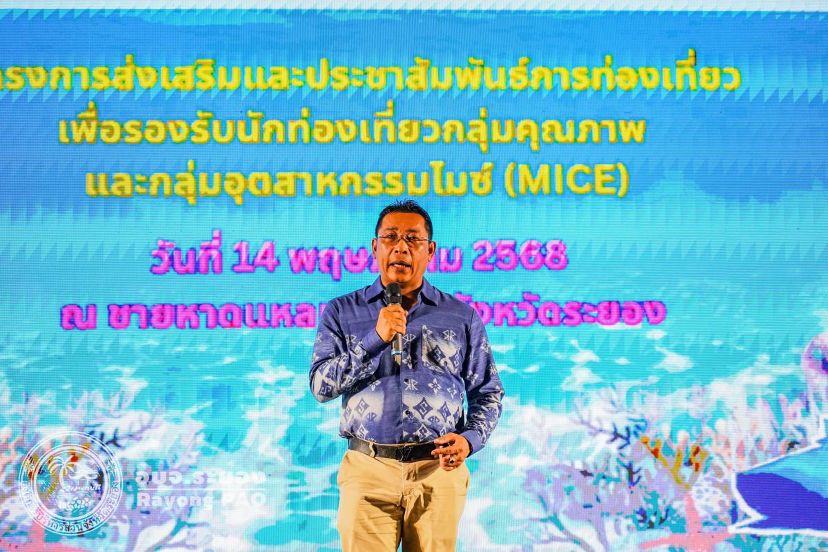 วันที่ 14 พฤษภาคม 2568 เวลา 18.00 น. นายประสานต์ พฤกษาชาติ รองนายกองค์การบริหารส่วนจังหวัดระยอง (2) พร้อมด้วย สภาอุตสาหกรรมท่องเที่ยวจังหวัดระยอง สมาคมธุรกิจการท่องเที่ยวจังหวัดระยอง และหน่วยงานภาคเอกชน ด้านการท่องเที่ยว เข้าร่วมพิธีเปิดโครงการส่งเสริมและประชาสัมพันธ์การท่องเที่ยวเพื่อรองรับนักท่องเที่ยวกลุ่มคุณภาพและกลุ่มอุตสาหกรรมไมซ์ (MICE) โดยมี นายไตรภพ วงไตรรัตน์ ผู้ว่าราชการจังหวัดระยองเป็นประธานในพิธี และผู้ที่เกี่ยวข้องเข้าร่วมพิธีเปิดโครงการฯ โดยพร้อมเพรียงกัน