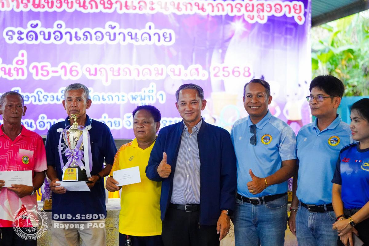 พิธีปิดโครงการจัดการแข่งขันกีฬาและนันทนาการผู้สูงอายุอำเภอบ้านค่าย ประจำปีงบประมาณ 2568
