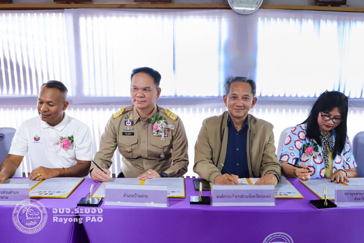 วันที่ 19 พฤษภาคม 2568 เวลา 15.00 น. นายปิยะ ปิตุเตชะ นายกองค์การบริหารส่วนจังหวัดระยอง เป็นประธานงานแถลงข่าว และร่วมลงนามบันทึกความร่วมมือ (MOU) การส่งเสริมเศรษฐกิจท่องเที่ยวเชิงเกษตรภายใต้ “โครงการจัดงานมังคุดหวานของดีอำเภอบ้านค่าย ประจำปีงบประมาณ พ.ศ. 2568” พร้อมด้วย นายประสานต์ พฤกษาชาติ รองนายกองค์การบริหารส่วนจังหวัดระยอง (2), นายวิจิตร พาพลงาม นายอำเภอบ้านค่าย, นายธนพล ศิริพล นายกองค์การบริหารส่วนตำบลหนองตะพาน, นายวัชรพล สารสอน ผอ.ททท.สำนักงานระยอง และนางสริญทิพญ ทัพมงคลทรัพย์ ประธานสภาอุตสาหกรรมท่องเที่ยวจังหวัดระยอง ผู้แทนจากหน่วยงานภาครัฐ ภาคเอกชน และผู้ที่เกี่ยวข้องเข้าร่วมงานแถลงข่าวฯ โดยพร้อมเพรียงกัน