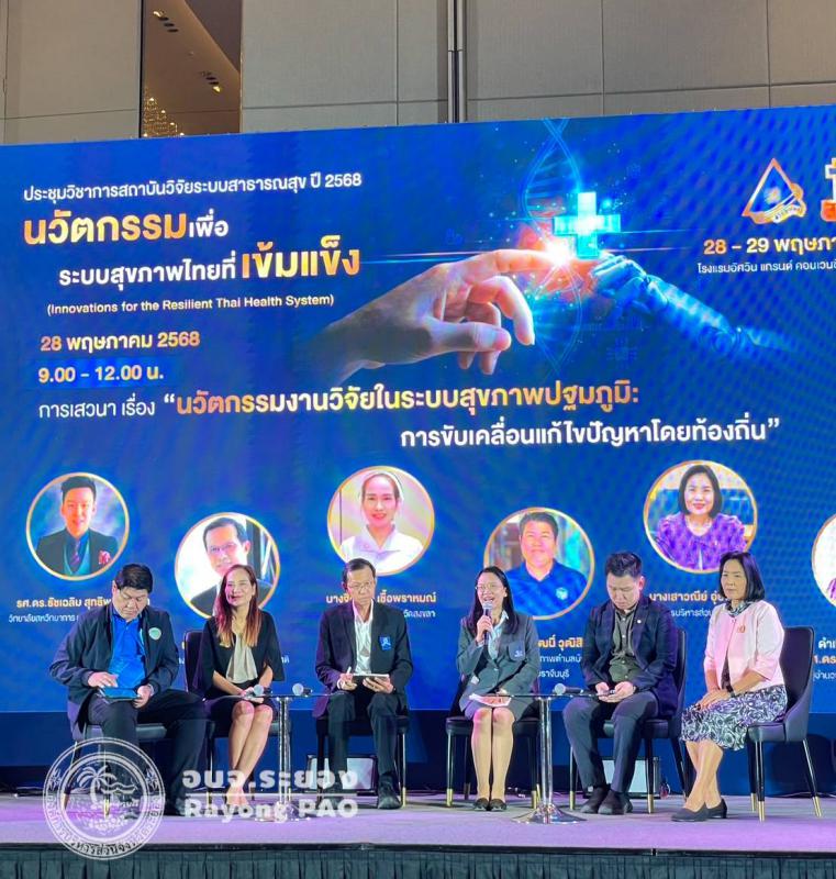 วันที่ 28 พฤษภาคม 2568 โรงพยาบาลส่งเสริมสุขภาพ กองสาธารณสุข อบจ.ระยอง ร่วมประชุม"นวัตกรรมงานวิจัยในระบบสุขภาพปฐมภูมิ : การขับเคลื่อนแก้ไขปัญหาโดยท้องถิ่น" ภายใต้การประชุมวิชาการสถาบันวิจัยระบบสาธารณสุข ประจำปี 2568 ณ โรงแรมอัศวิน แกรนด์ คอนเวนชัน กรุงเทพฯ
