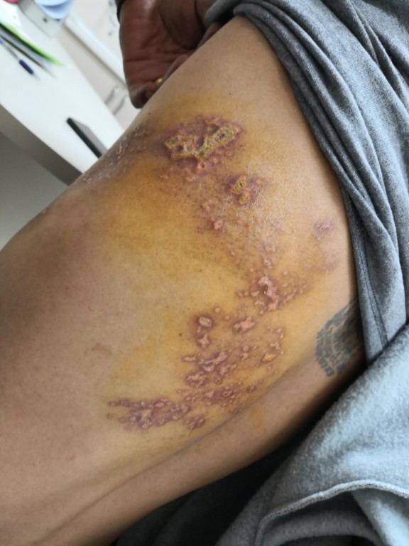2. การสัมผัสเลือดหรือน้ำเหลืองของผู้ติดเชื้อ HIV ผ่านผิวสัมผัสที่เป็นแผลเปิดหรือรอยถลอก รวมทั้งการใช้ของมีคมร่วมกับผู้ติดเชื้อ HIV โดยไม่ทำความสะอาดอุปกรณ์ให้สะอาดเพียงพอ เช่น มีดโกนหนวด กรรไกรตัดเล็บ เข็มสักผิวหนังหรือคิ้ว เข็มเจาะหู