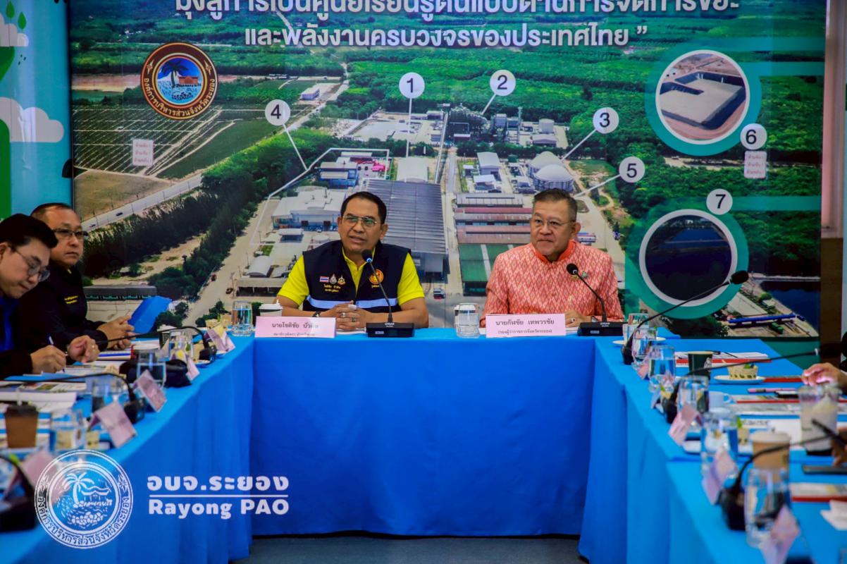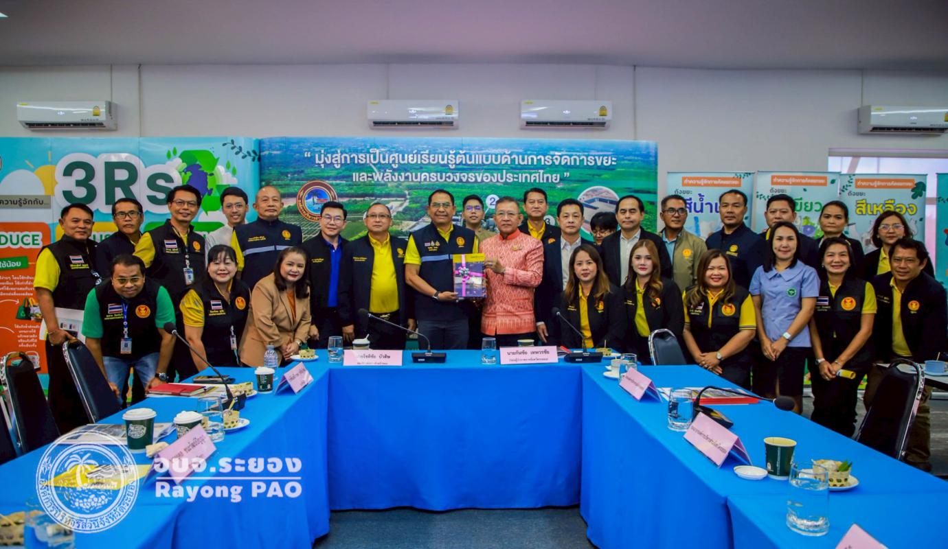 วันที่ 12 มิถุนายน 2568 เวลา 08.40 น. นายปิยะ ปิตุเตชะ นายกองค์การบริหารส่วนจังหวัดระยอง พร้อมด้วยนายกิตติ เกียรติ์มนตรี รองนายกฯ, นายสุรินทร์ แสงทอง ปลัดฯ, นายทศพล คงมาลัย ส.อบจ.เมืองระยอง เขต 8, นายสุริยะ ศิริวัฒน์ ผอ.กองสาธารณสุข, ผู้บริหารบริษัท GPSC ผู้นำองค์กรปกครองส่วนท้องถิ่น และเจ้าหน้าที่ที่เกี่ยวข้องร่วมให้การต้อนรับ โดยคณะกรรมการขับเคลื่อนโครงการสมาชิกวุฒิสภาพบประชาชน กลุ่มภาคตะวันออก ได้ลงพื้นที่เพื่อจัดโครงการสมาชิกวุฒิสภาพบประชาชน ครั้งที่ 3/2568 ซึ่งได้เข้ารับฟังบรรยายเกี่ยวกับการบริหารจัดการขยะที่สามารถแปลงขยะเป็นเชื้อเพลิง RDF พร้อมกันนี้ได้นำคณะเข้าเยี่ยมชมพื้นที่ภายในศูนย์กำจัดขยะมูลฝอยฯ และศูนย์การเรียนรู้แปลงขยะเป็นพลังงาน (Waste to Energy Learning Center)