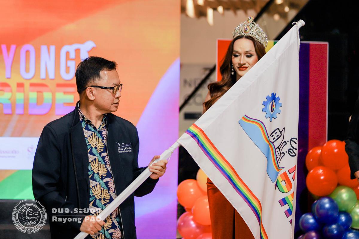 ด้วยจังหวัดระยอง ได้รับเกียรติจากท่านนายกรัฐมนตรี มอบธง Pride ให้แก่จังหวัด ในงาน Bangkok Pride Festival 2025 เมื่อวันที่ 1 มิถุนายนที่ผ่านมา เพื่อเป็นสัญลักษณ์แห่งการเฉลิมฉลอง สนับสนุน และ ส่งเสริมสิทธิมนุษยชนของผู้มีความหลากหลายทางเพศ ตลอดจนเพื่อแสดงออกถึงความมุ่งมั่นของจังหวัดระยอง ในการขับเคลื่อนประเด็นความเสมอภาค และความเท่าเทียมทางเพศในทุกมิติ ณ ศูนย์การค้าแพชชั่น ช้อปปิ้งเดสติเนชั่นระยอง (ห้องแหลมทอง ระยอง)