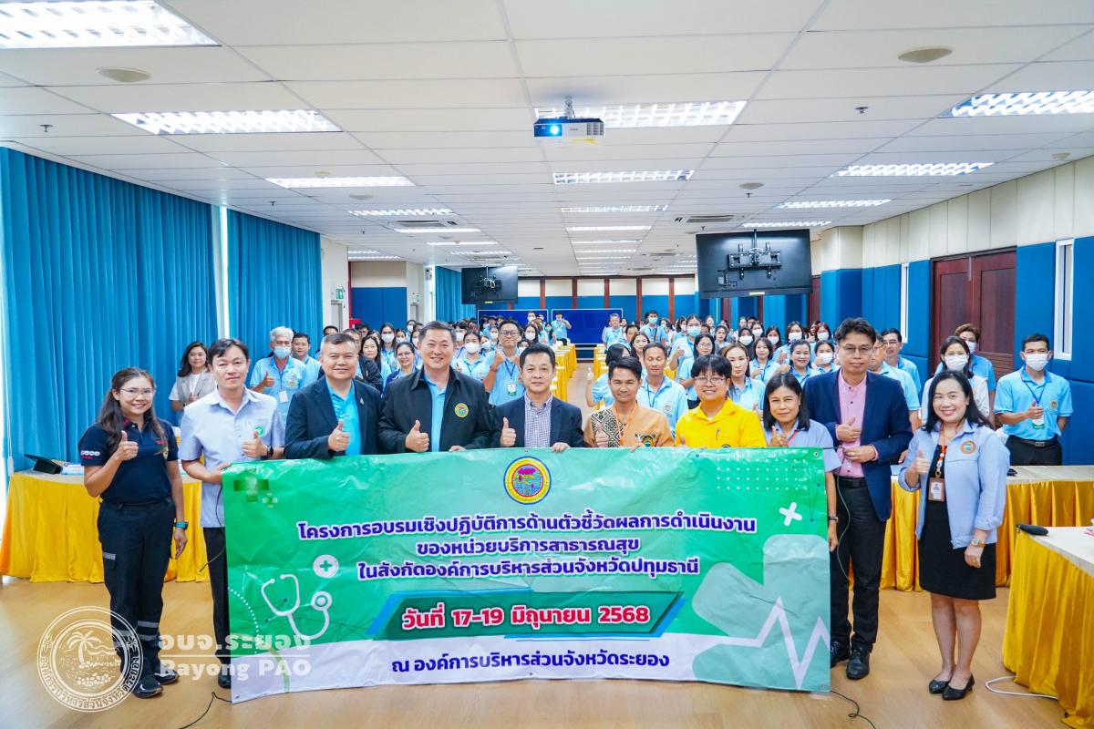 วันที่ 17 มิถุนายน 2568 เวลา 13.00 น. องค์การบริหารส่วนจังหวัดระยอง นำโดย นายกิตติ เกียรติ์มนตรี รองนายกองค์การบริหารส่วนจังหวัดระยอง (1) พร้อมด้วย นายเตชิต วัชรเมธาพงษ์ รองปลัดองค์การบริหารส่วนจังหวัดระยอง, นายสุริยะ ศิริวัฒน์ ผู้อำนวยการกองสาธารณสุข และเจ้าหน้าที่ที่เกี่ยวข้อง ร่วมให้การต้อนรับคณะศึกษาดูงานจาก องค์การบริหารส่วนจังหวัดปทุมธานี ซึ่งนำโดย ร.อ.นพ. พงษ์ศักดิ์ เจริญงามเสมอ ที่ปรึกษาพิเศษนายกองค์การบริหารส่วนจังหวัดปทุมธานี พร้อมคณะผู้บริหาร และเจ้าหน้าที่ที่เกี่ยวข้อง จำนวน 150 คน เข้าศึกษาดูงานในโครงการอบรมเชิงปฏิบัติการด้านตัวชี้วัดผลการดำเนินงานของหน่วยบริการสาธารณสุข ณ ห้องประชุม 1 ชั้น 3 องค์การบริหารส่วนจังหวัดระยอง