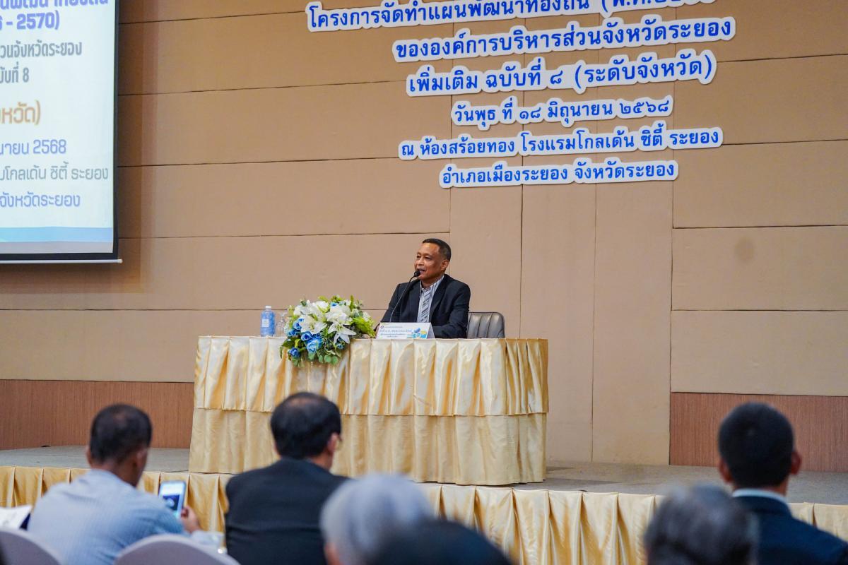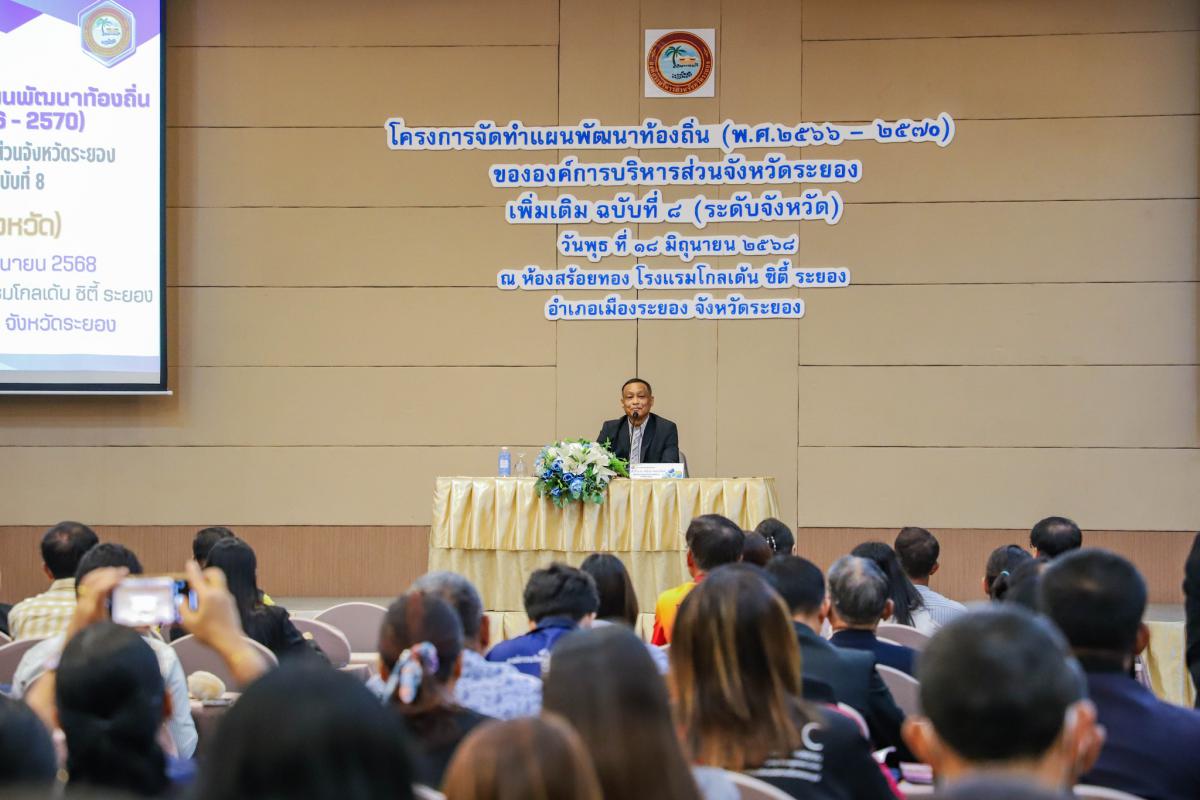 วันที่ 18 มิถุนายน 2568 เวลา 09.30 น. สำนักยุทธศาสตร์และงบประมาณ องค์การบริหารส่วนจังหวัดระยอง ได้ดำเนินการจัดทำแผนพัฒนาท้องถิ่น (พ.ศ. 2566 - 2570) ขององค์การบริหารส่วนจังหวัดระยอง เพิ่มเติม ฉบับที่ 8 (ระดับจังหวัด) โดยมี ว่าที่ร้อยตรี พิรุณ เหมะรักษ์ ผู้ทรงคุณวุฒิเฉพาะด้านพลังงานและสิ่งแวดล้อม เป็นประธานในพิธีเปิดงาน พร้อมด้วย คณะผู้บริหาร สมาชิกสภาองค์การบริหารส่วนจังหวัดระยอง หัวหน้าส่วนราชการ ผู้นำองค์กรปกครองส่วนท้องถิ่น ผู้นำชุมชน ประชาคมท้องถิ่น ภาคเอกชน และหน่วยงานที่เกี่ยวข้อง เข้าร่วมงานอย่างพร้อมเพรียงกัน ณ ห้องสร้อยทอง โรงแรมโกลเด้น ซิตี้ ระยอง อำเภอเมืองระยอง จังหวัดระยอง